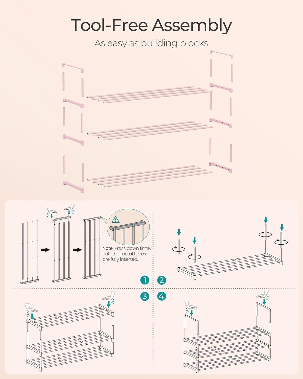 【EASY ASSEMBLY】A simple structure, numbered parts, and illustrated instructions make this shoe shelf easy to assemble. Even better, no tools are needed!