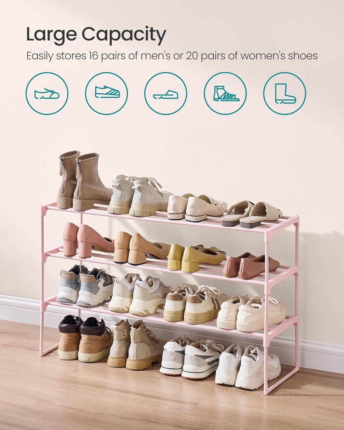 【ROBUST AND DURABLE】Connected by quality plastic connectors, this shoe organizer made of thick metal tubes holds up to 22 lb per tier, giving your footwear a reliable home
