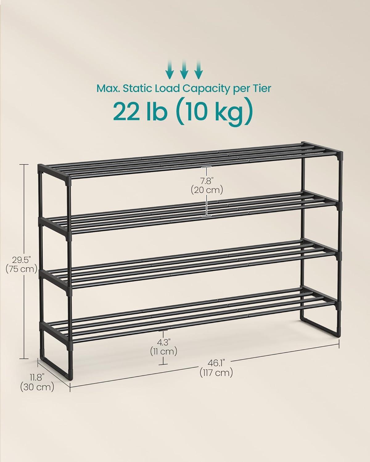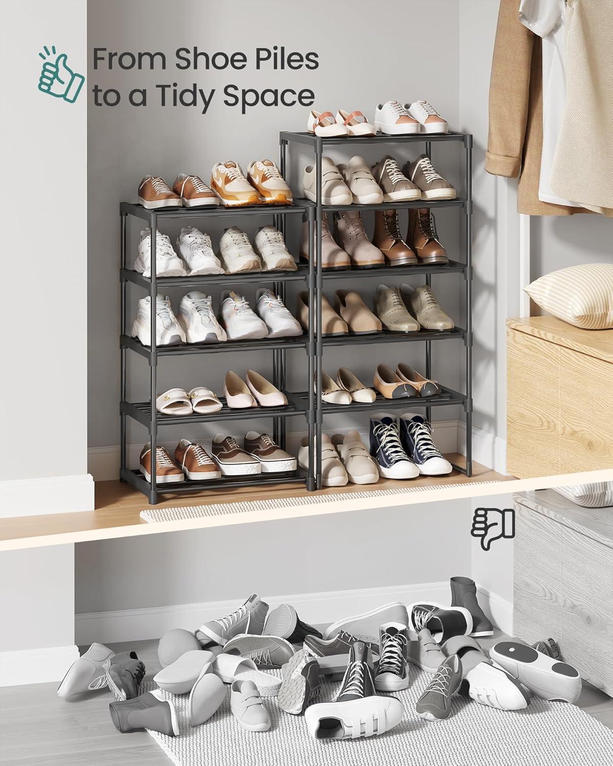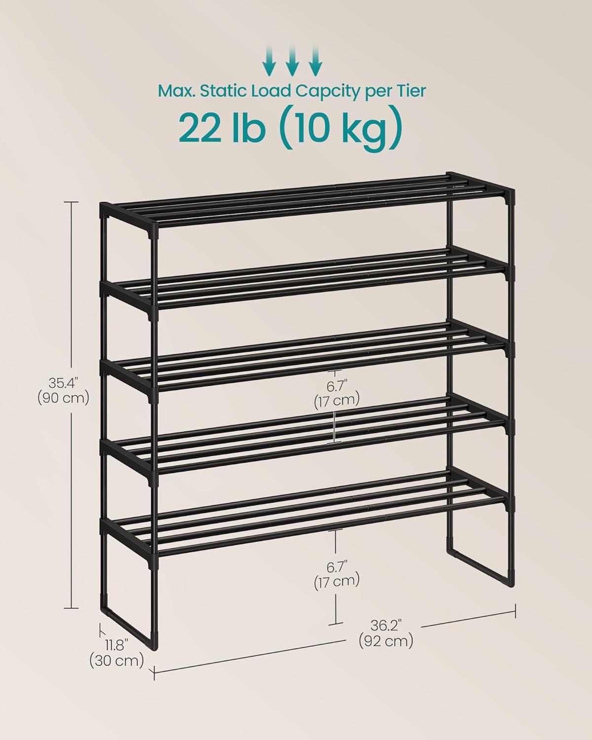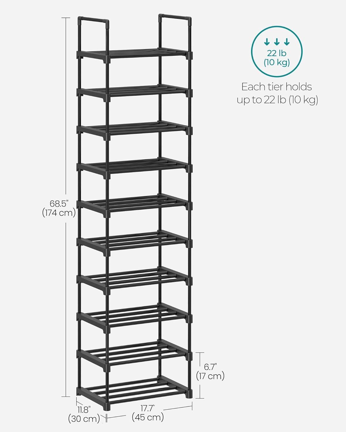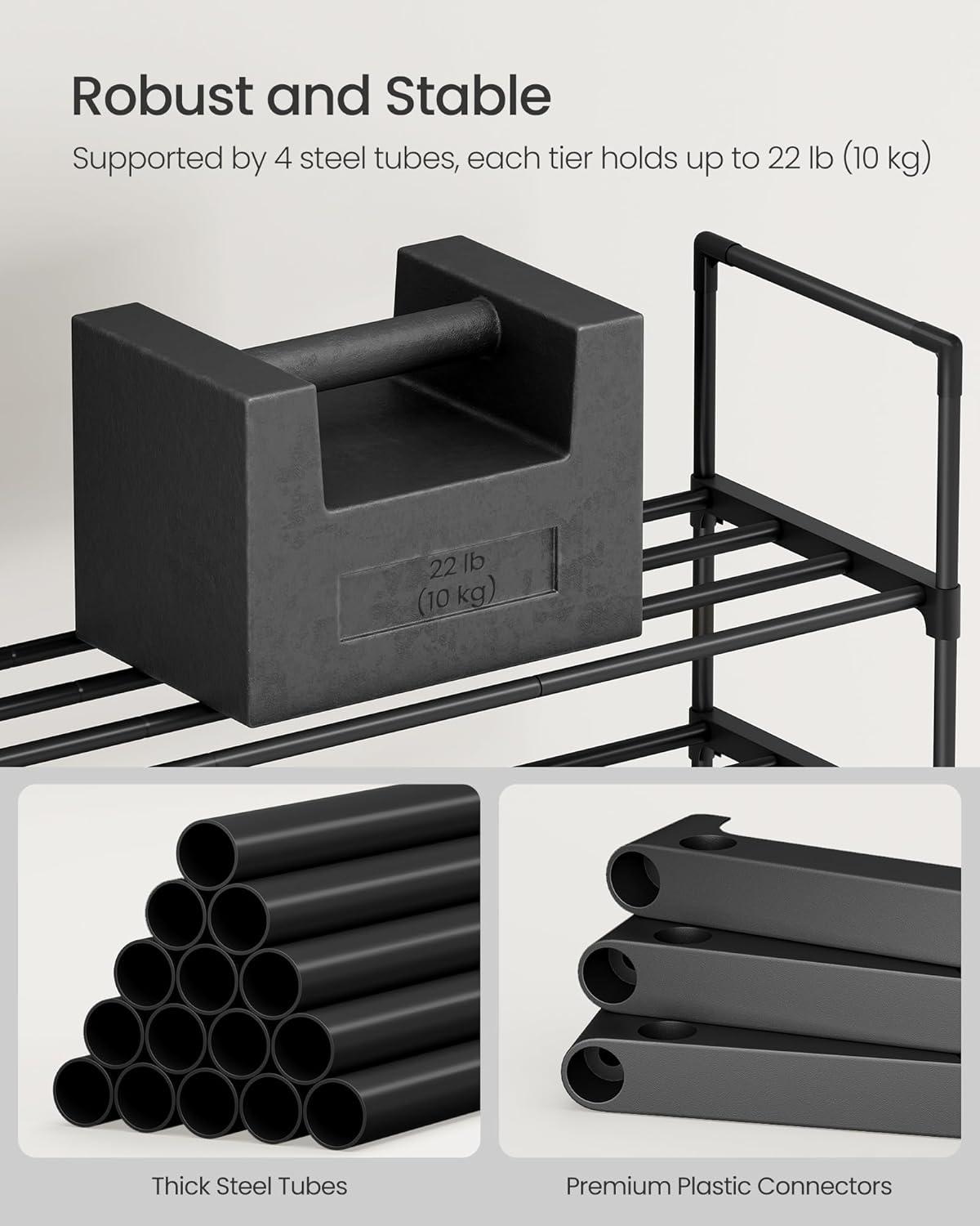 Robust and Durable: Connected by quality plastic connectors, this shoe organizer made of thick metal tubes holds up to 22 lb per tier, giving your footwear a reliable home