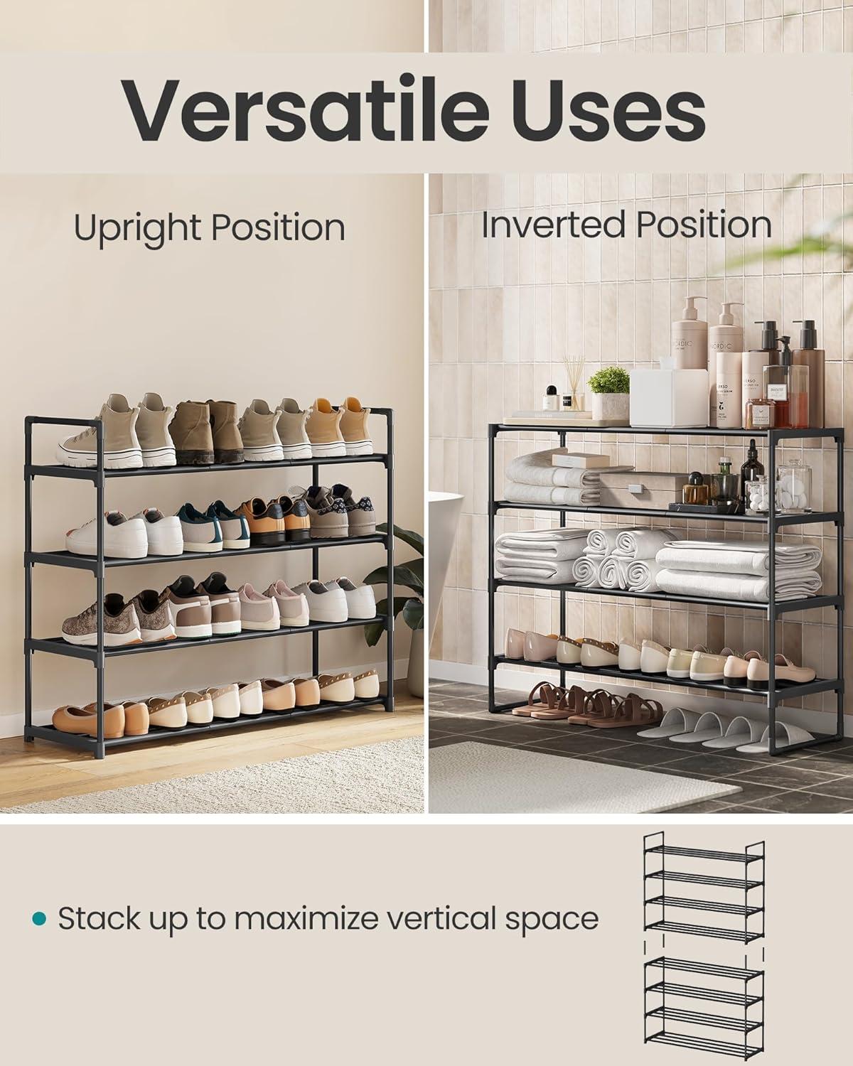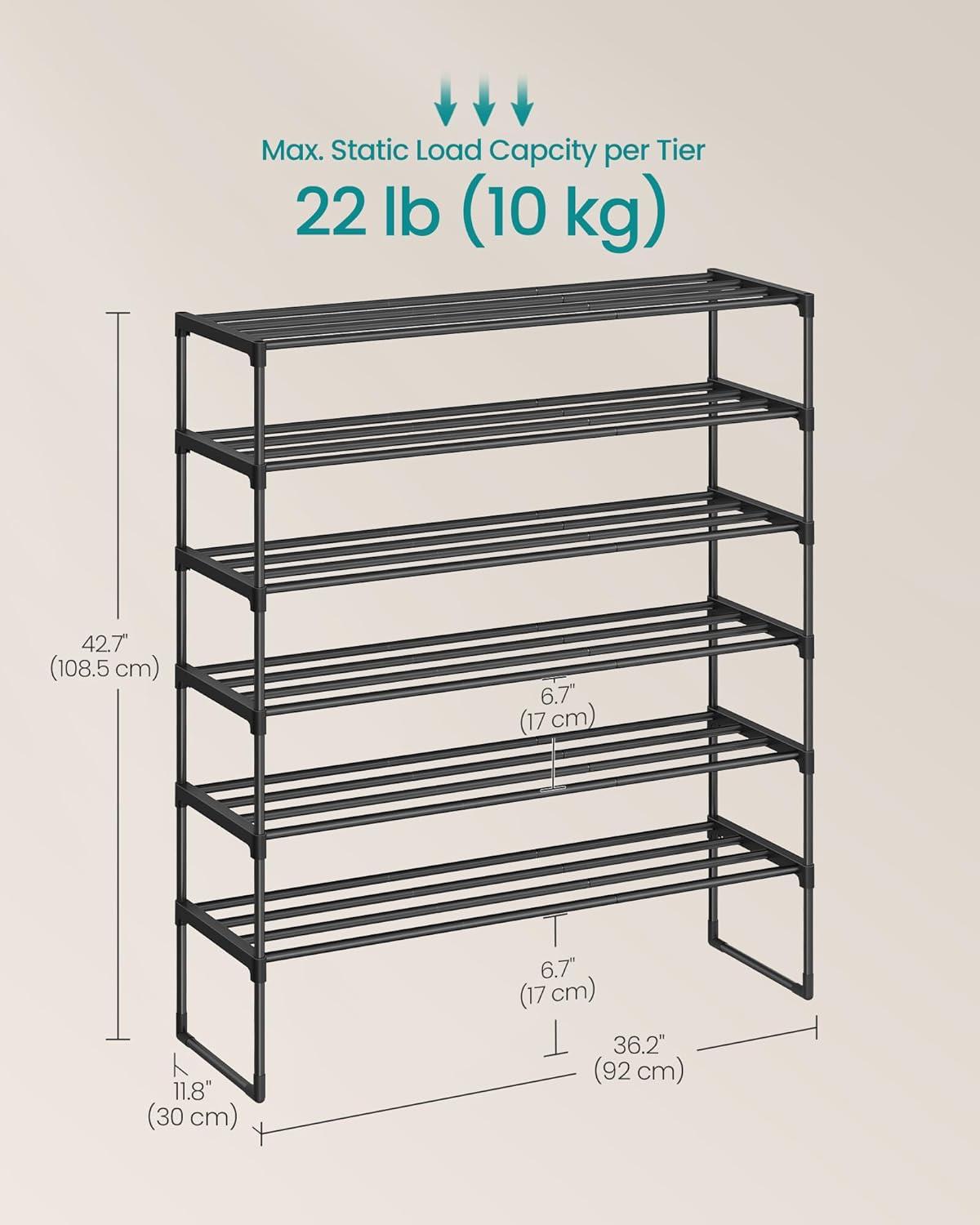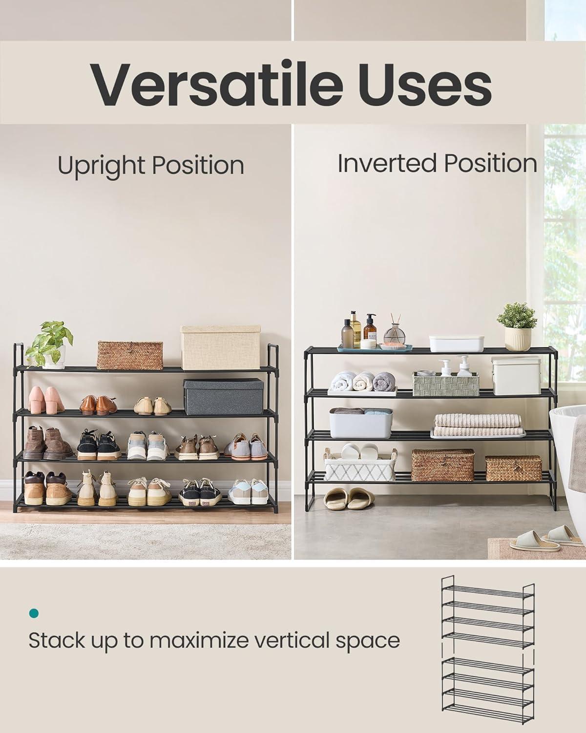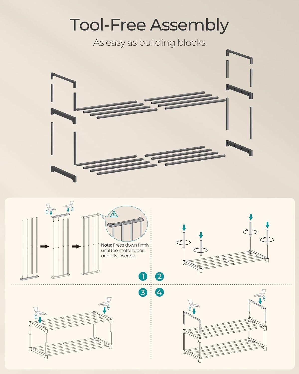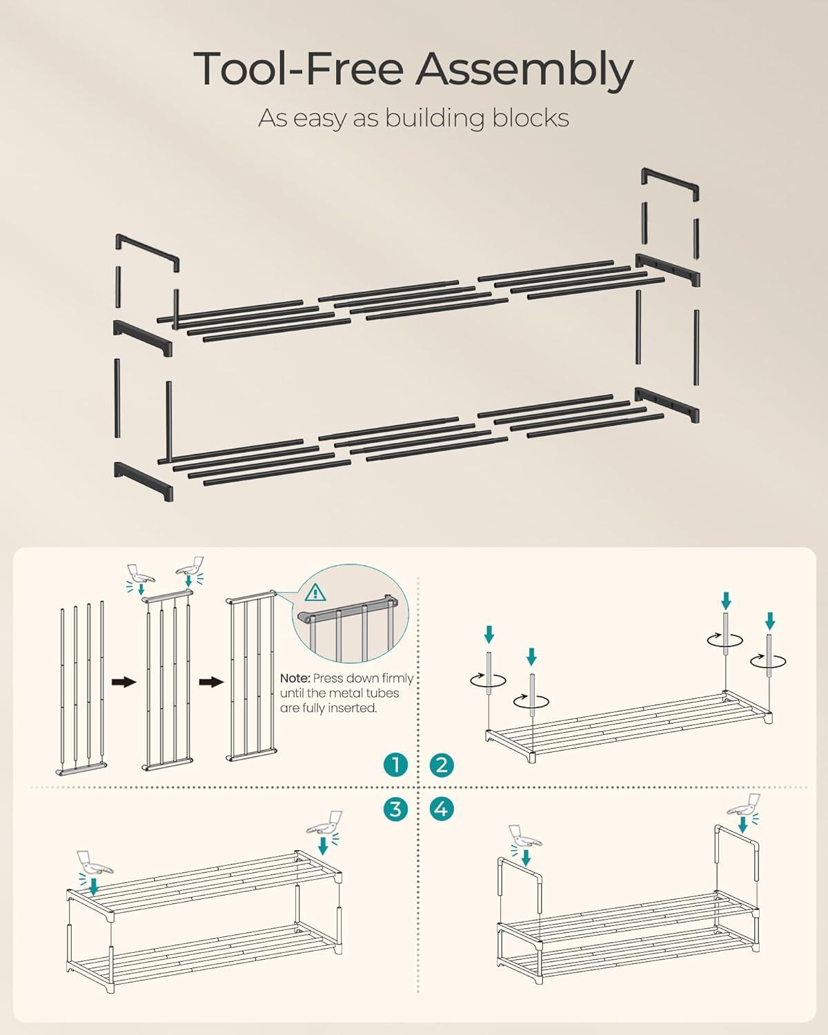 Robust and Durable: Connected by quality plastic connectors, this shoe organizer made of thick metal tubes holds up to 22 lb per tier, giving your footwear a reliable home