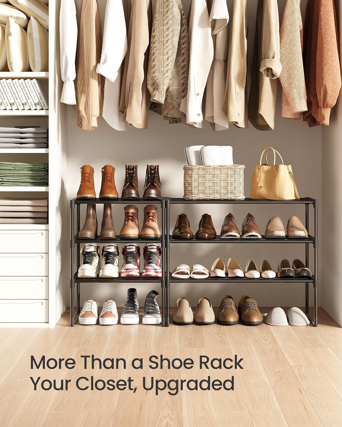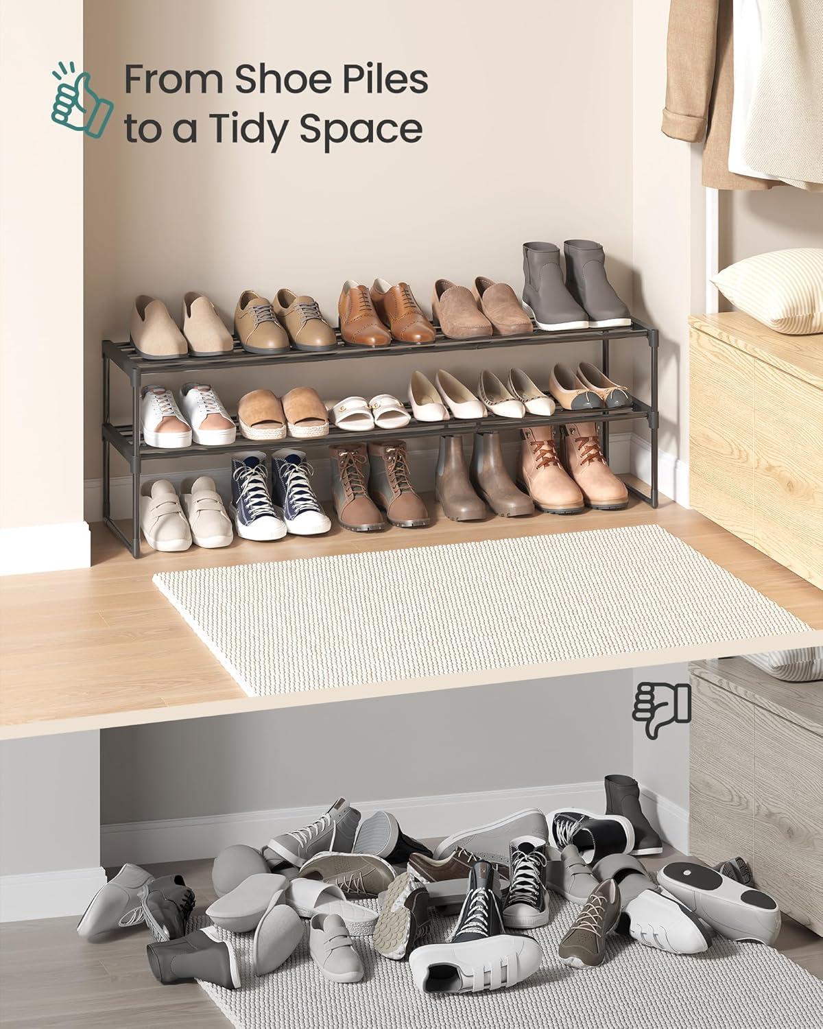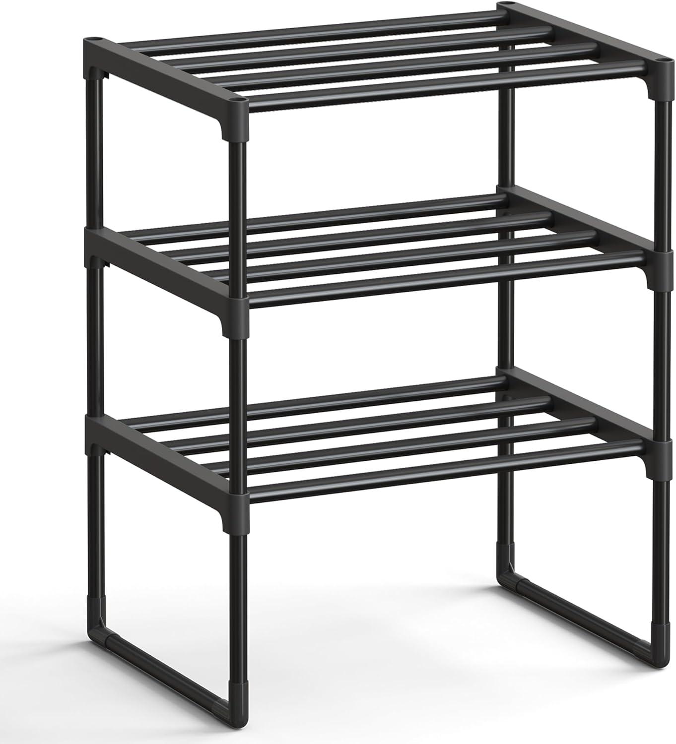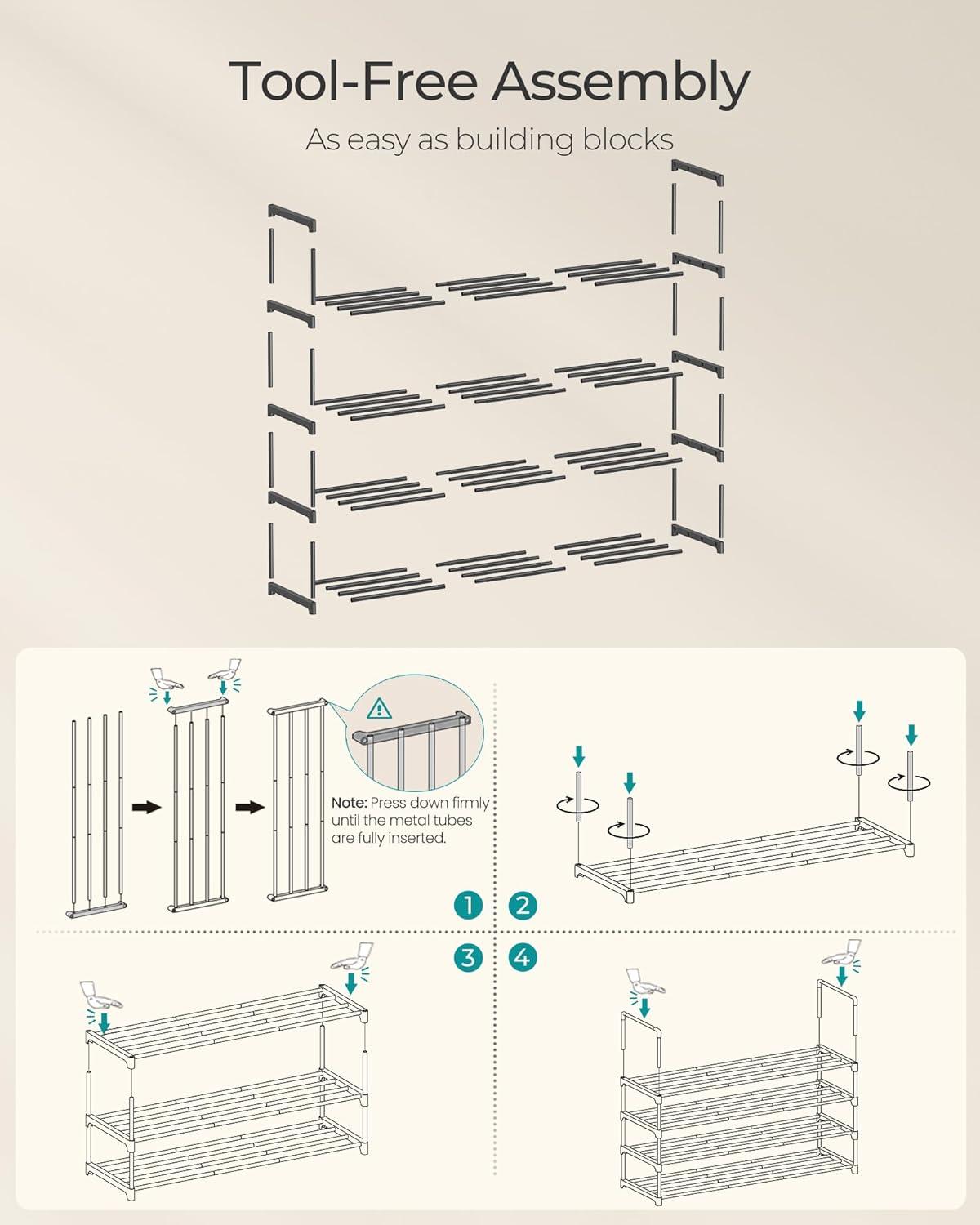 Robust and Durable: Connected by quality plastic connectors, this shoe organizer made of thick metal tubes holds up to 22 lb per tier, giving your footwear a reliable home