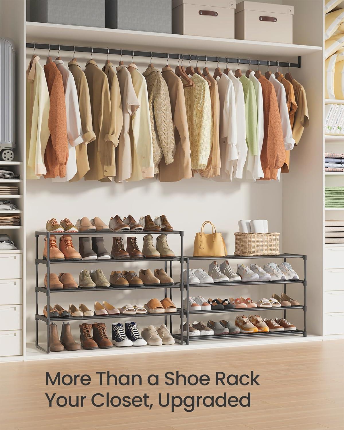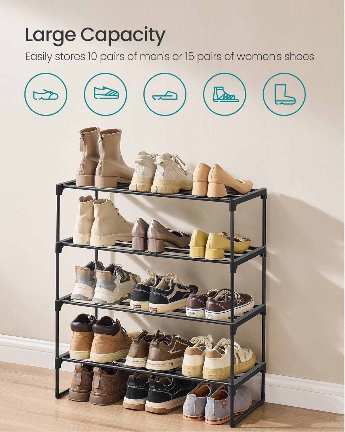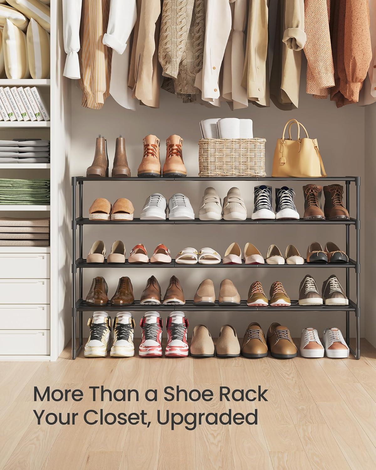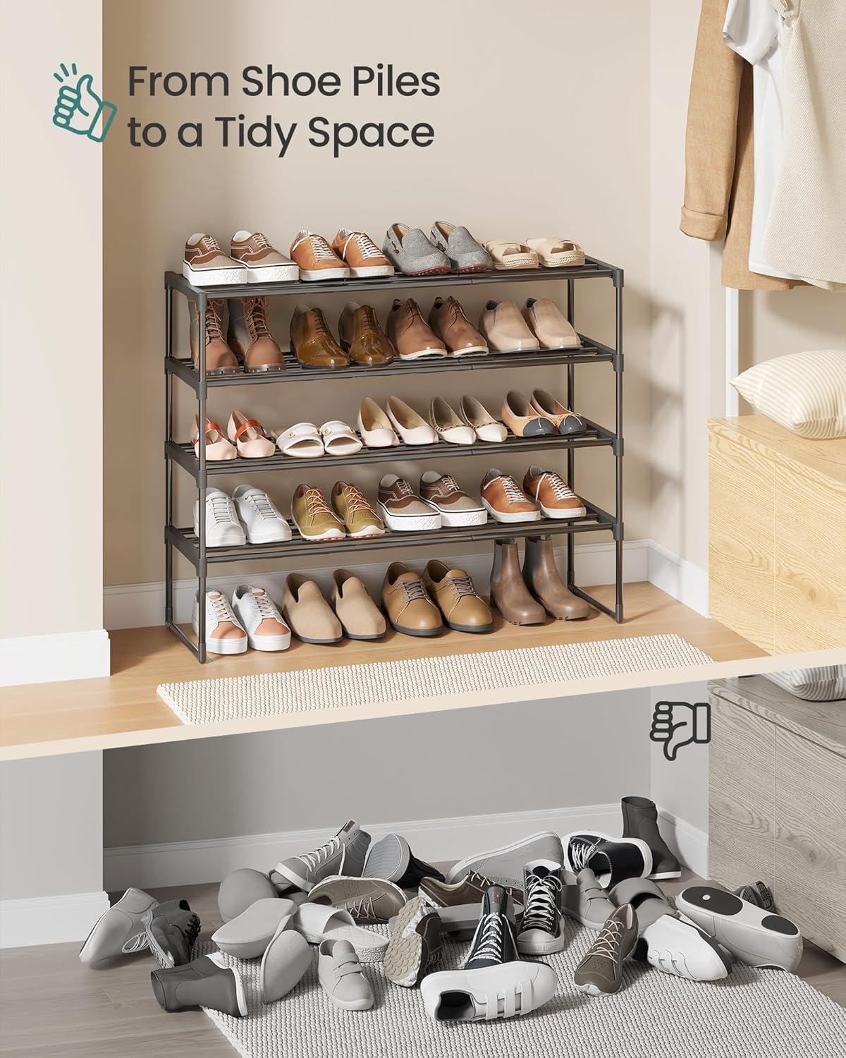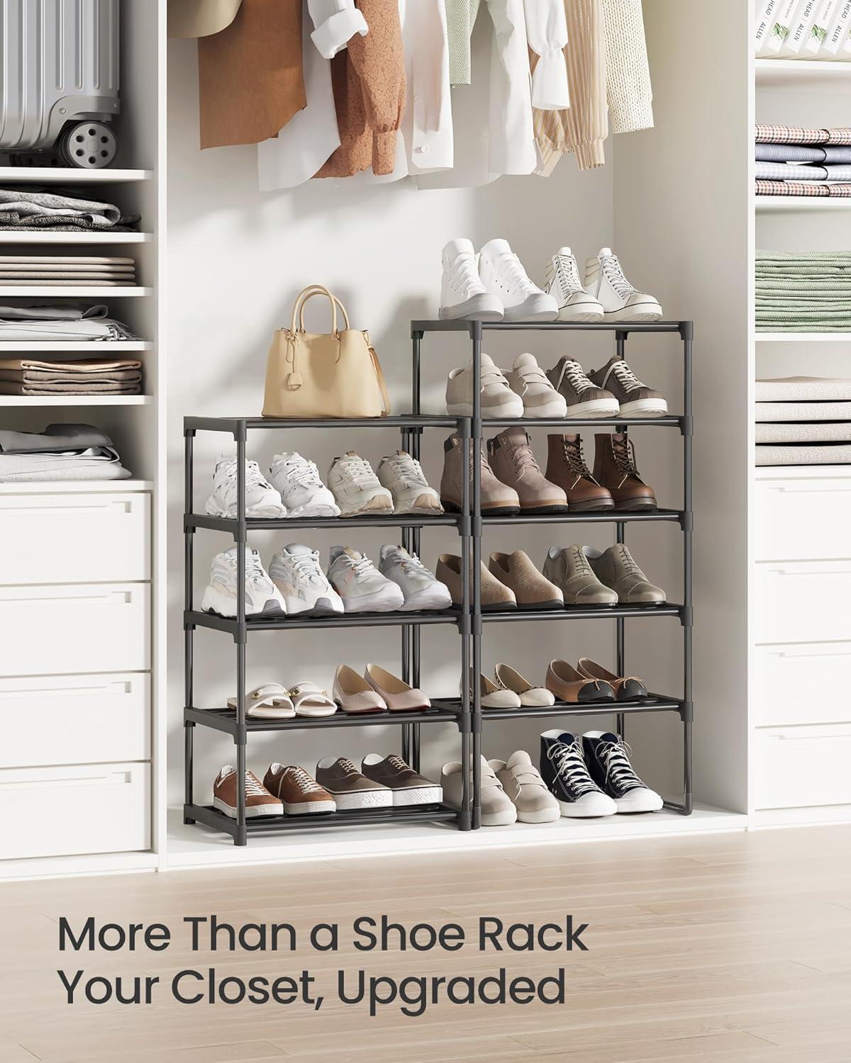 Robust and Durable: Connected by quality plastic connectors, this shoe organizer made of thick metal tubes holds up to 22 lb per tier, giving your footwear a reliable home