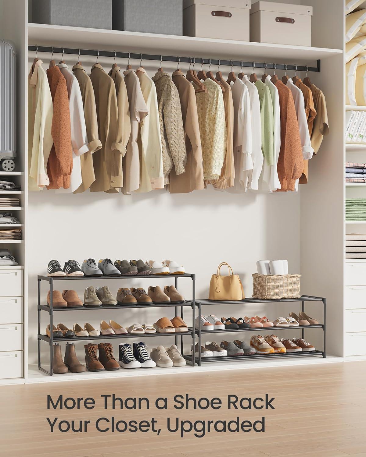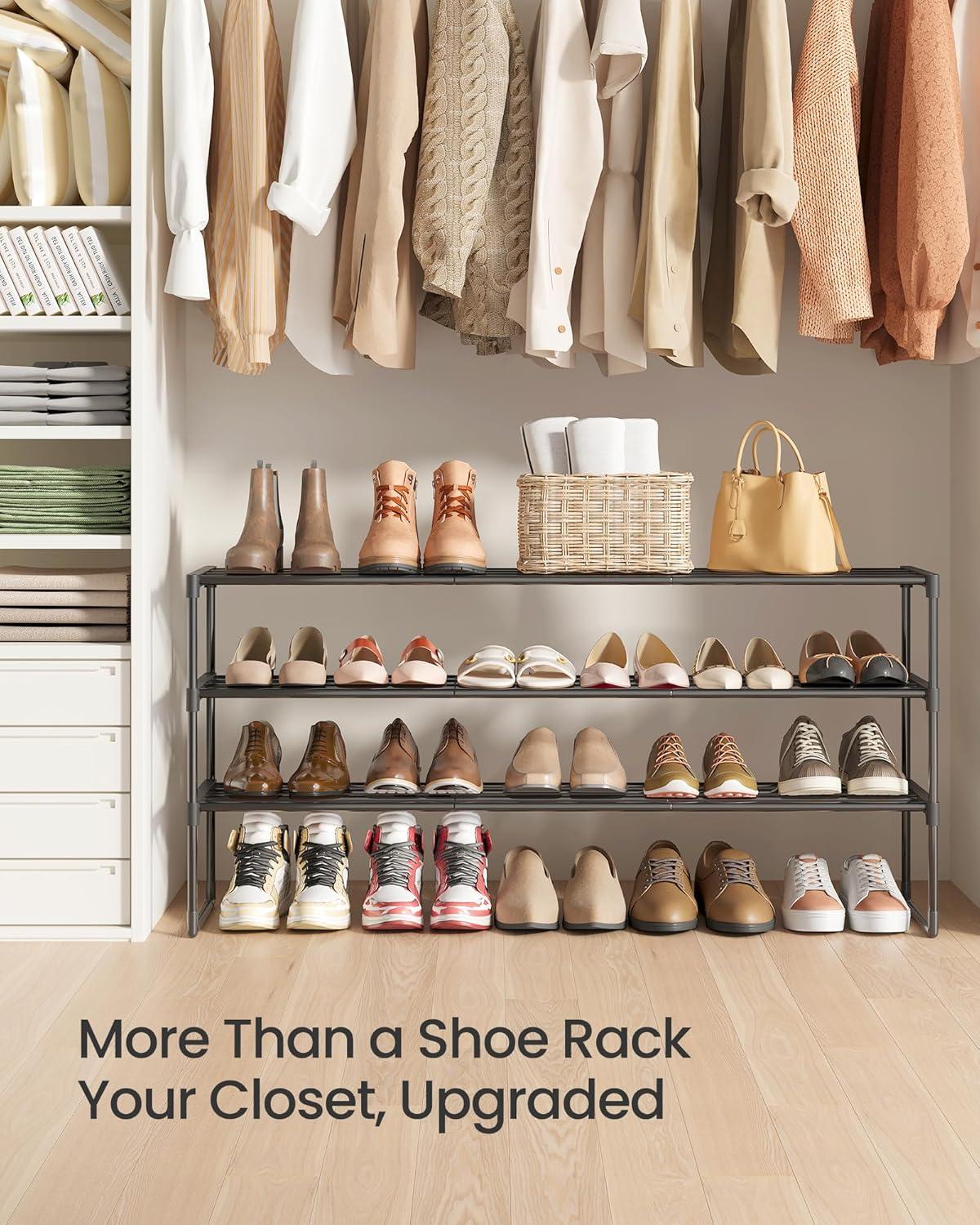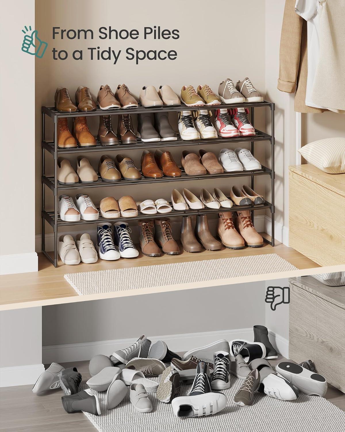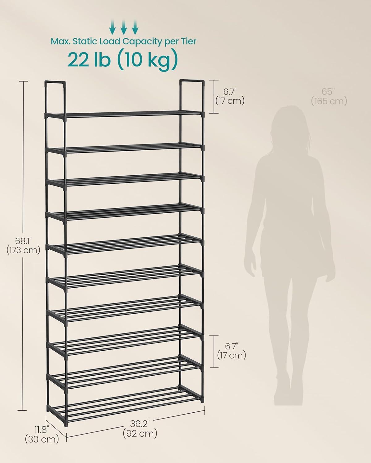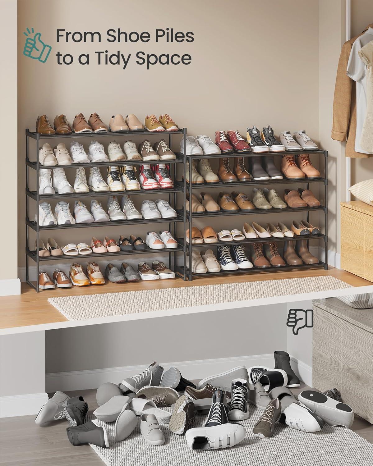 Robust and Durable: Connected by quality plastic connectors, this shoe organizer made of thick metal tubes holds up to 22 lb per tier, giving your footwear a reliable home