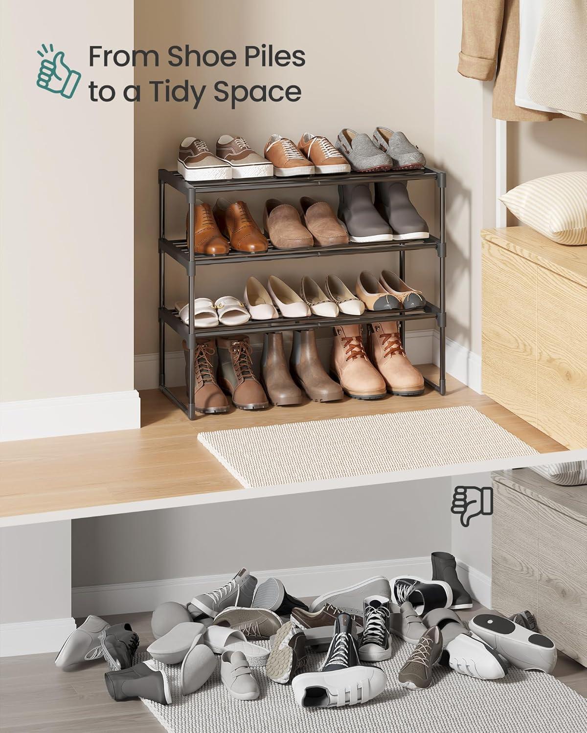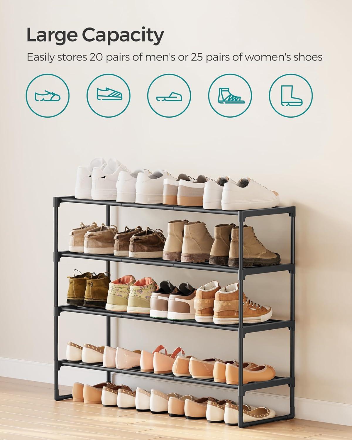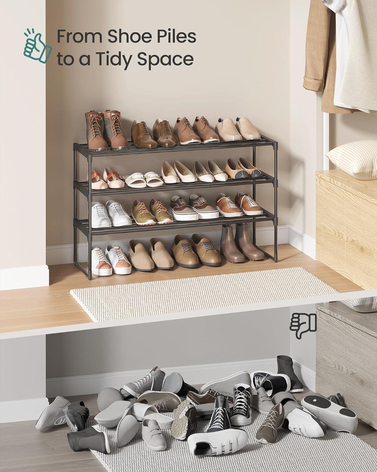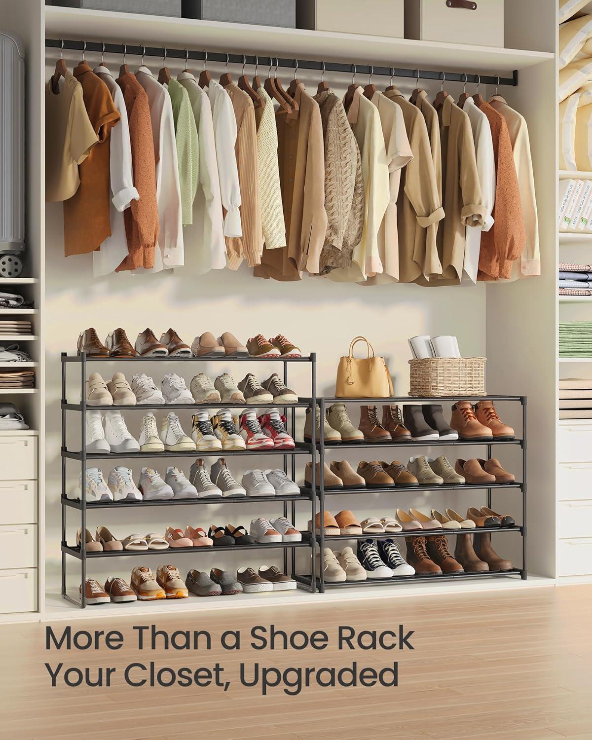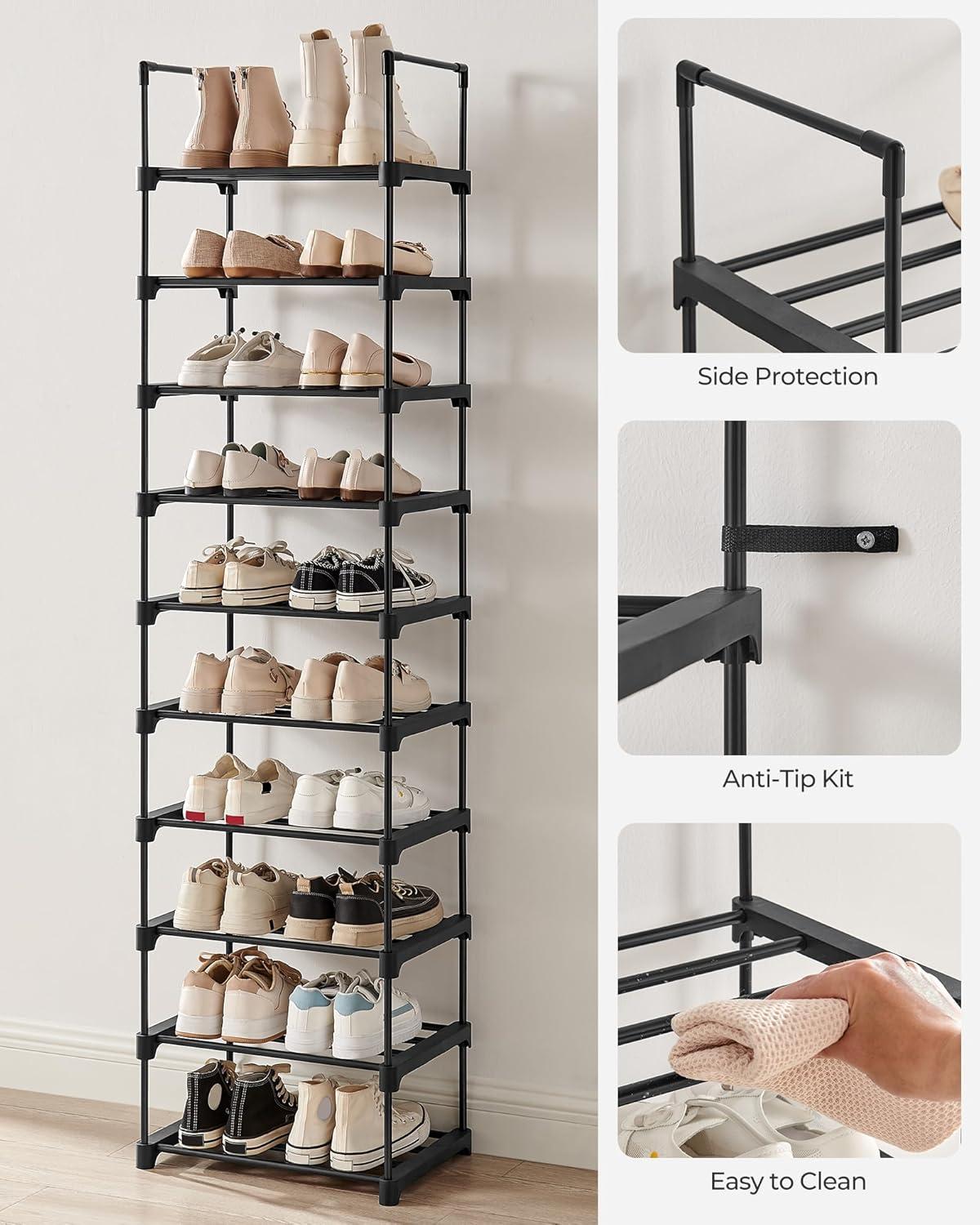 Robust and Durable: Connected by quality plastic connectors, this shoe organizer made of thick metal tubes holds up to 22 lb per tier, giving your footwear a reliable home