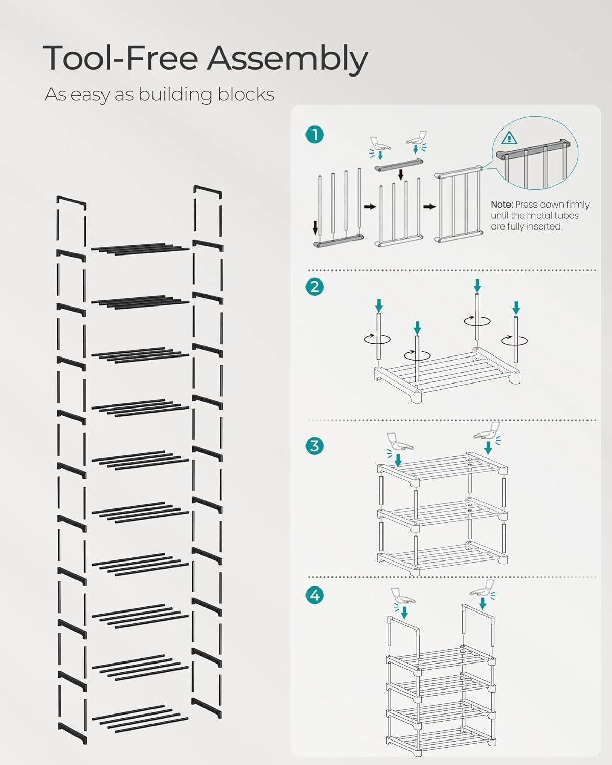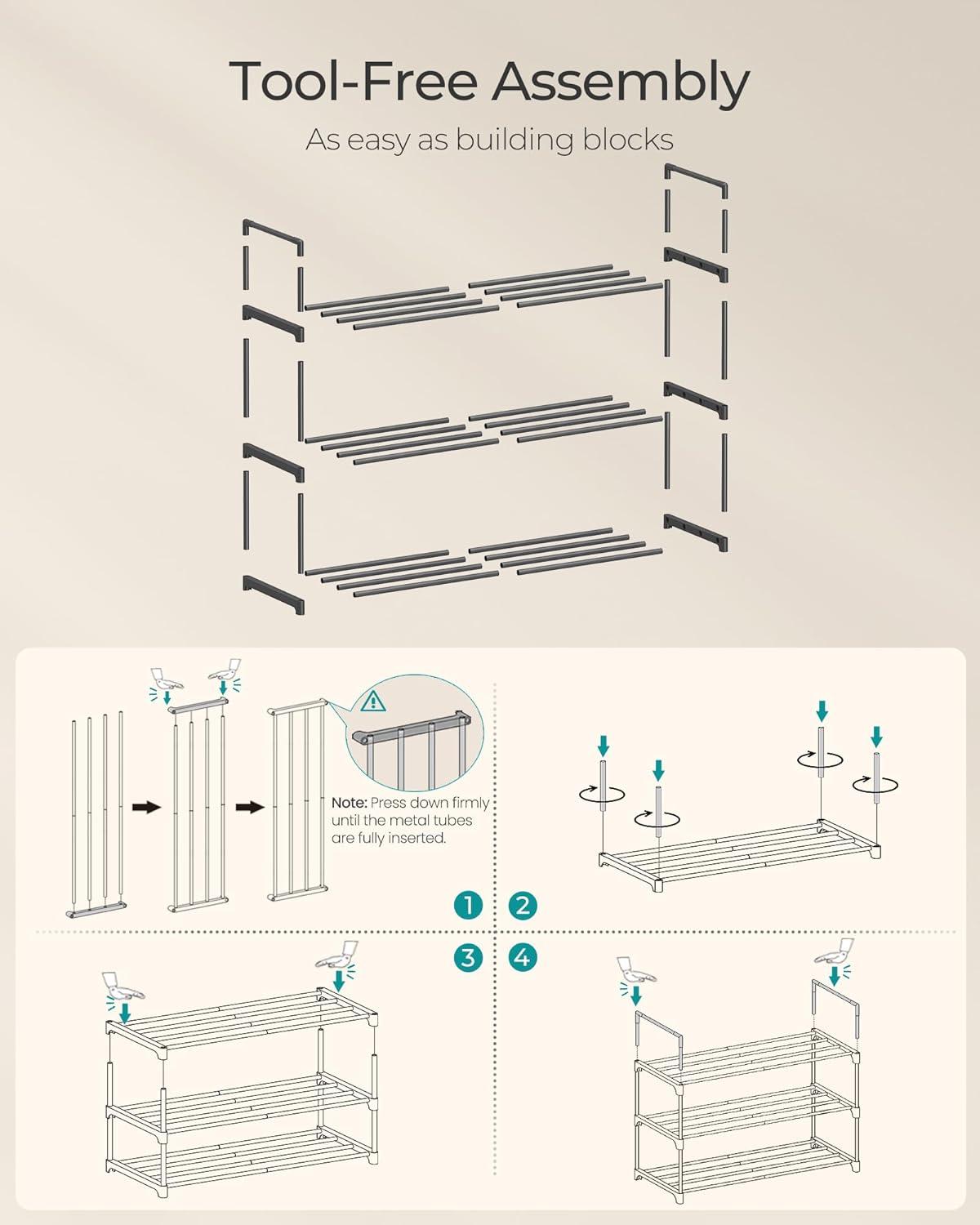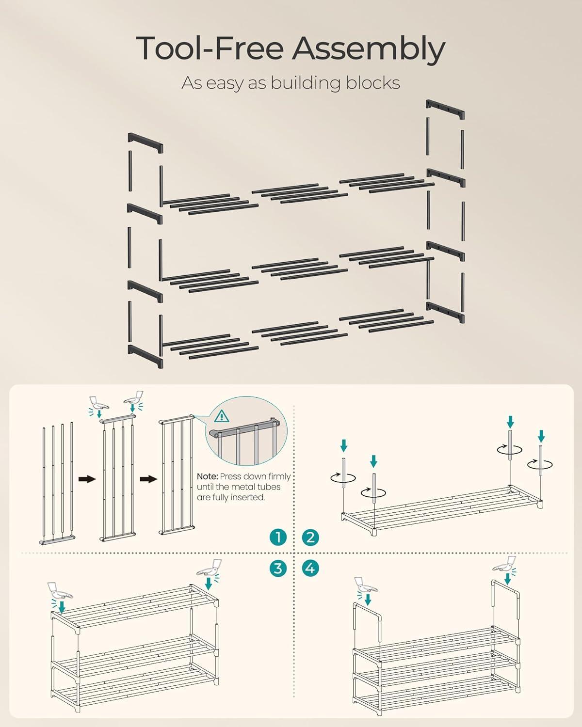 Easy Assembly: A simple structure, numbered parts, and illustrated instructions make this shoe shelf easy to assemble. Even better, no tools are needed!