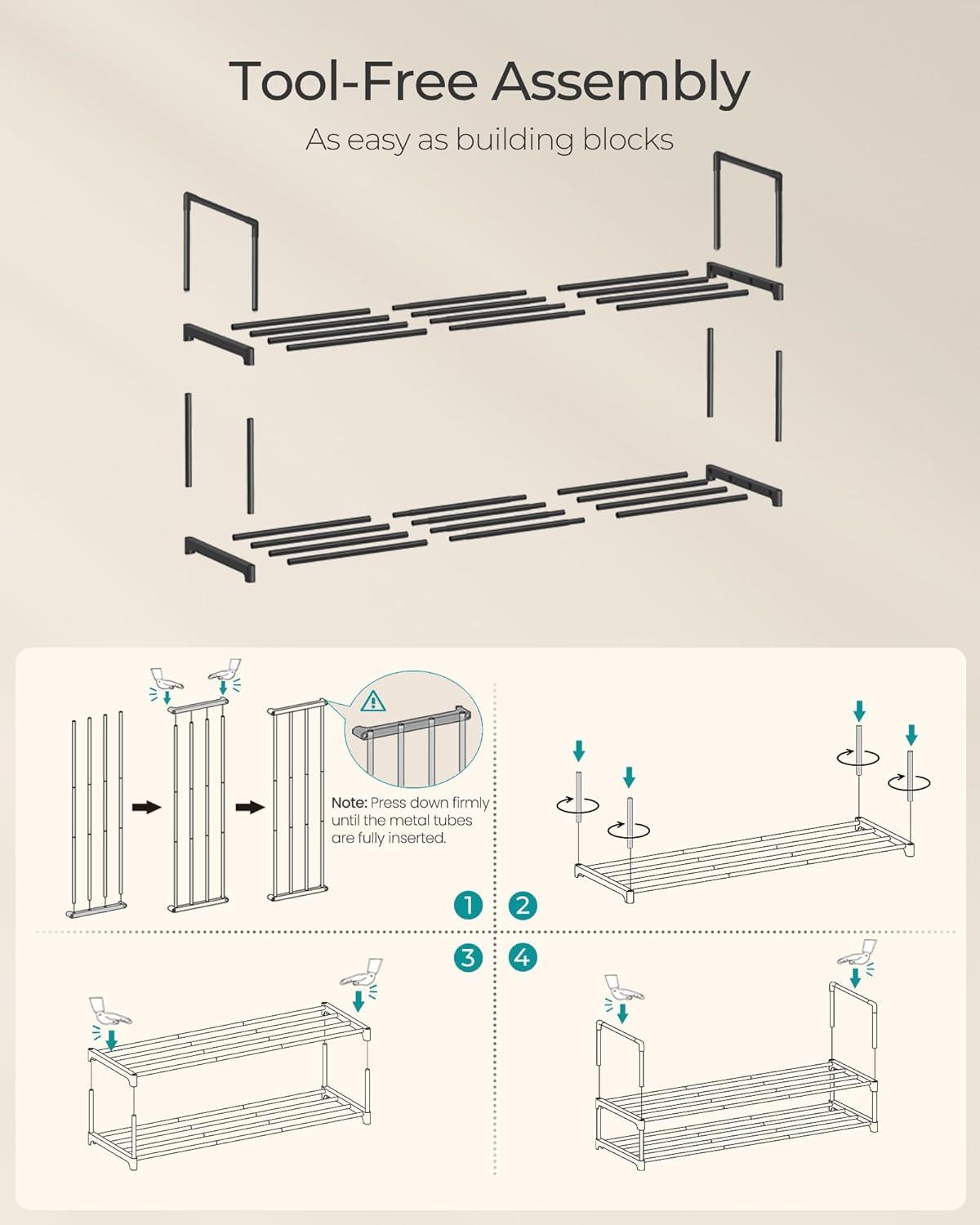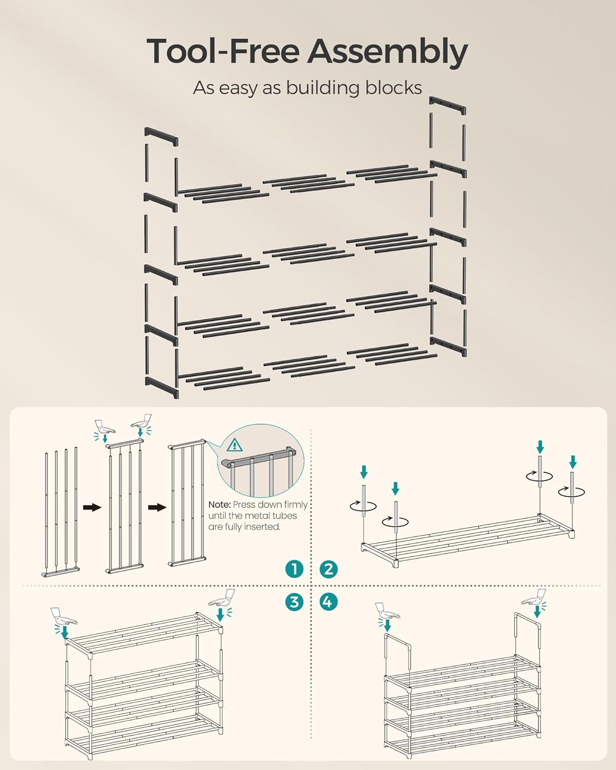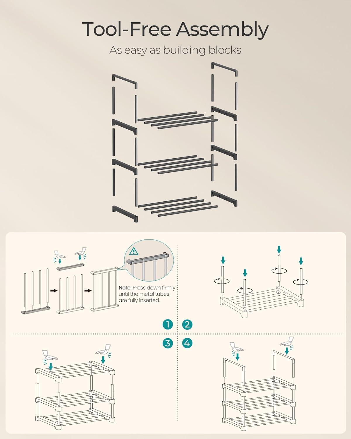 Easy Assembly: A simple structure, numbered parts, and illustrated instructions make this shoe shelf easy to assemble. Even better, no tools are needed!