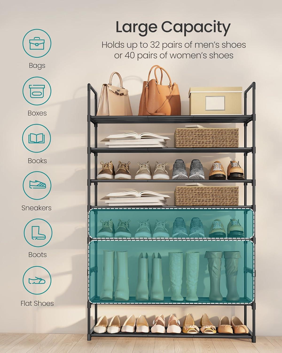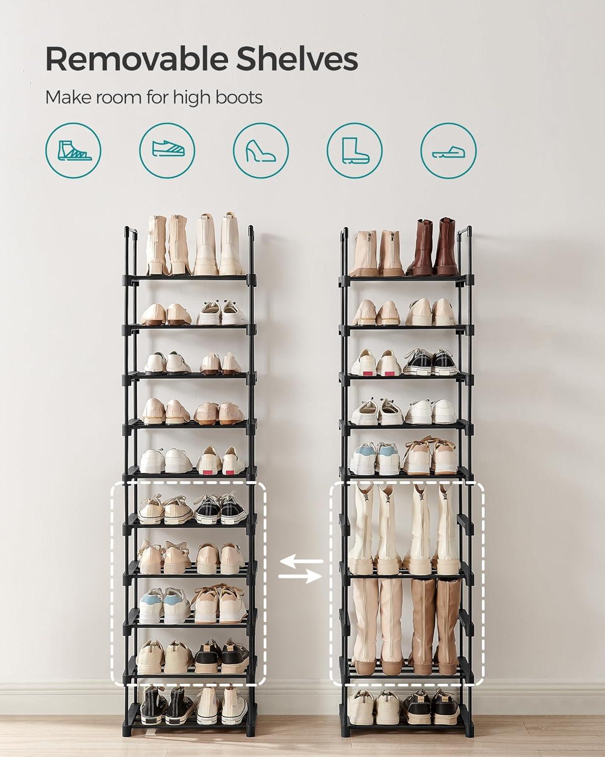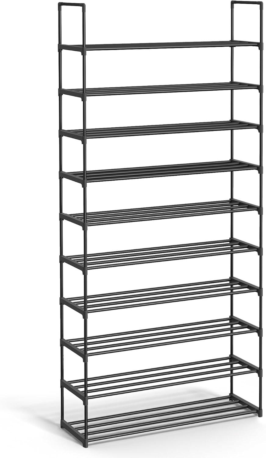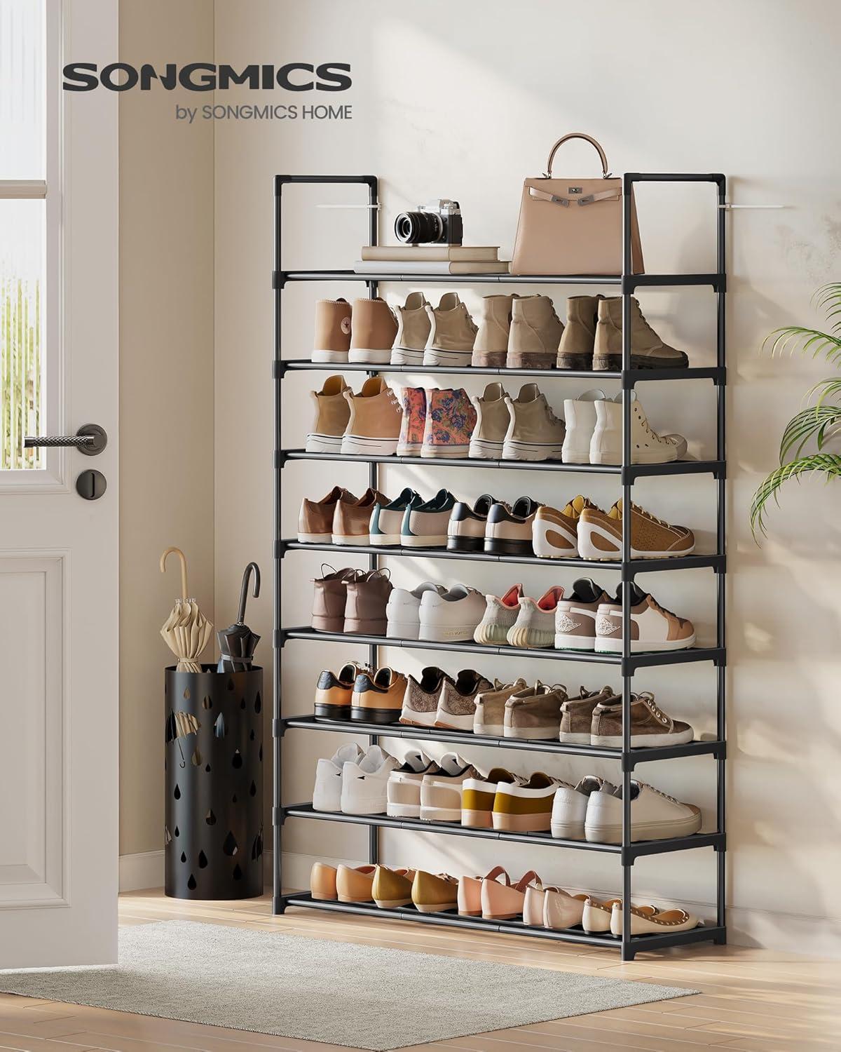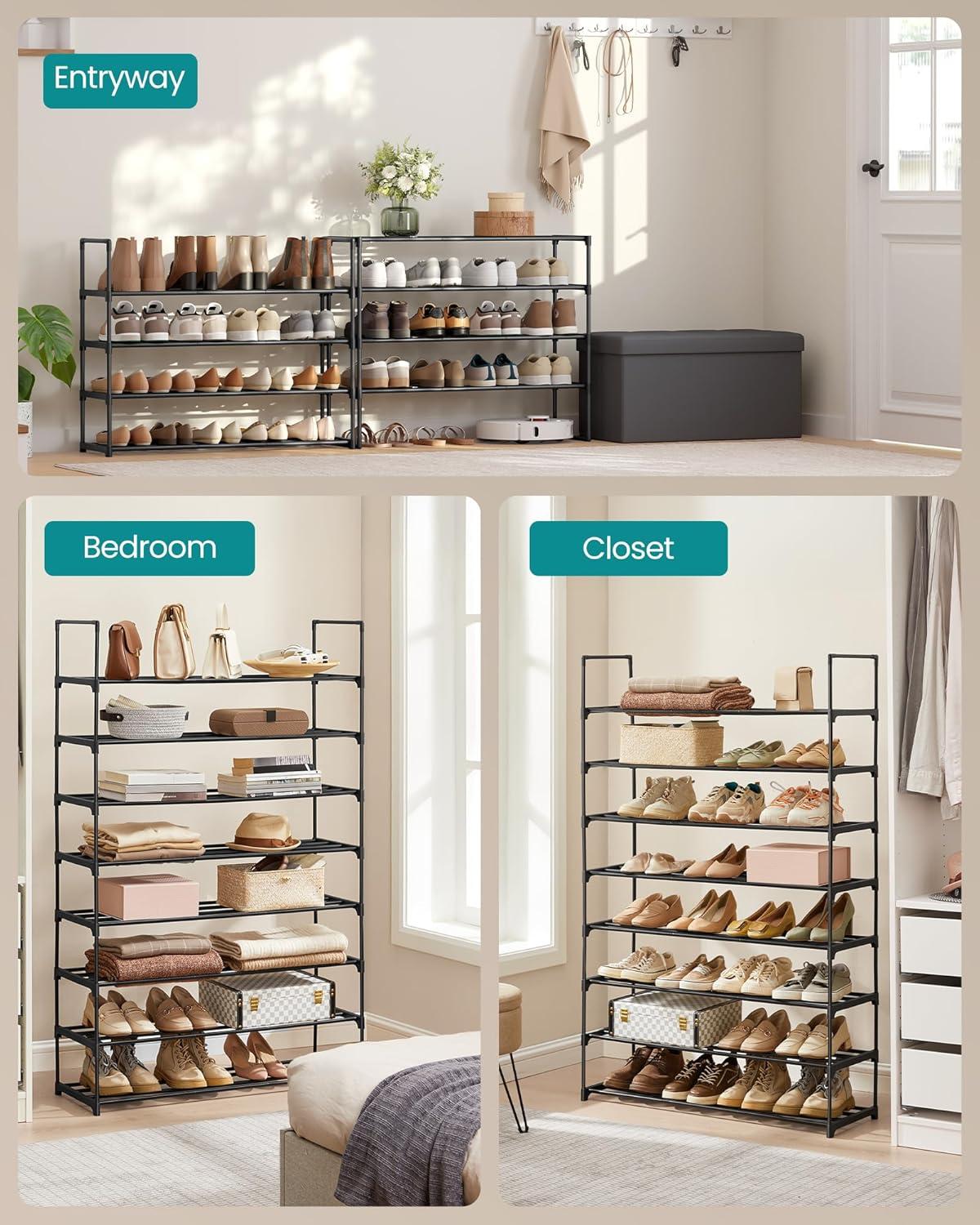 SONGMICS Shoe Rack, 8-Tier Shoe Organizer, Metal Storage Shelf, Upright or Upside Down, for 32-40 Pairs, Stackable, for Entryway, 11.8 x 36.2 x 56.5 Inches, Black ULSA308BH01(Black)