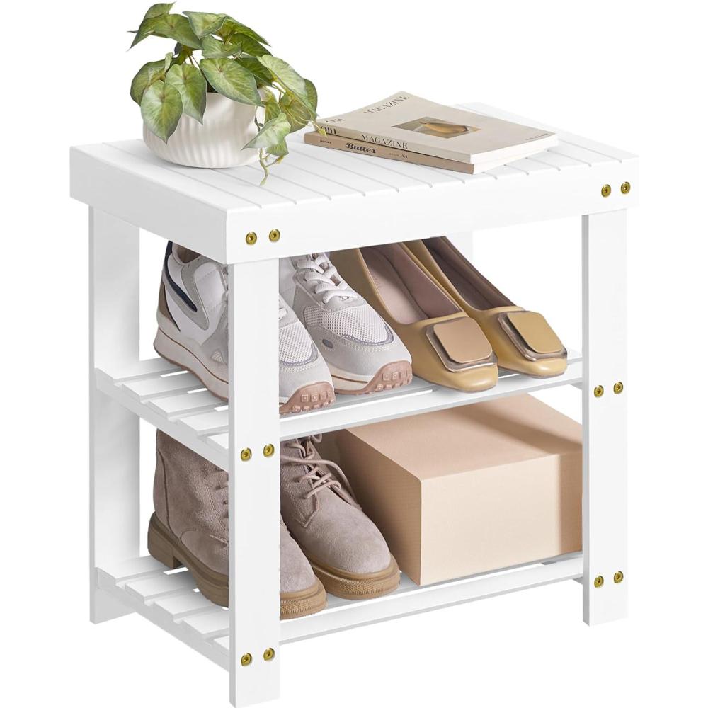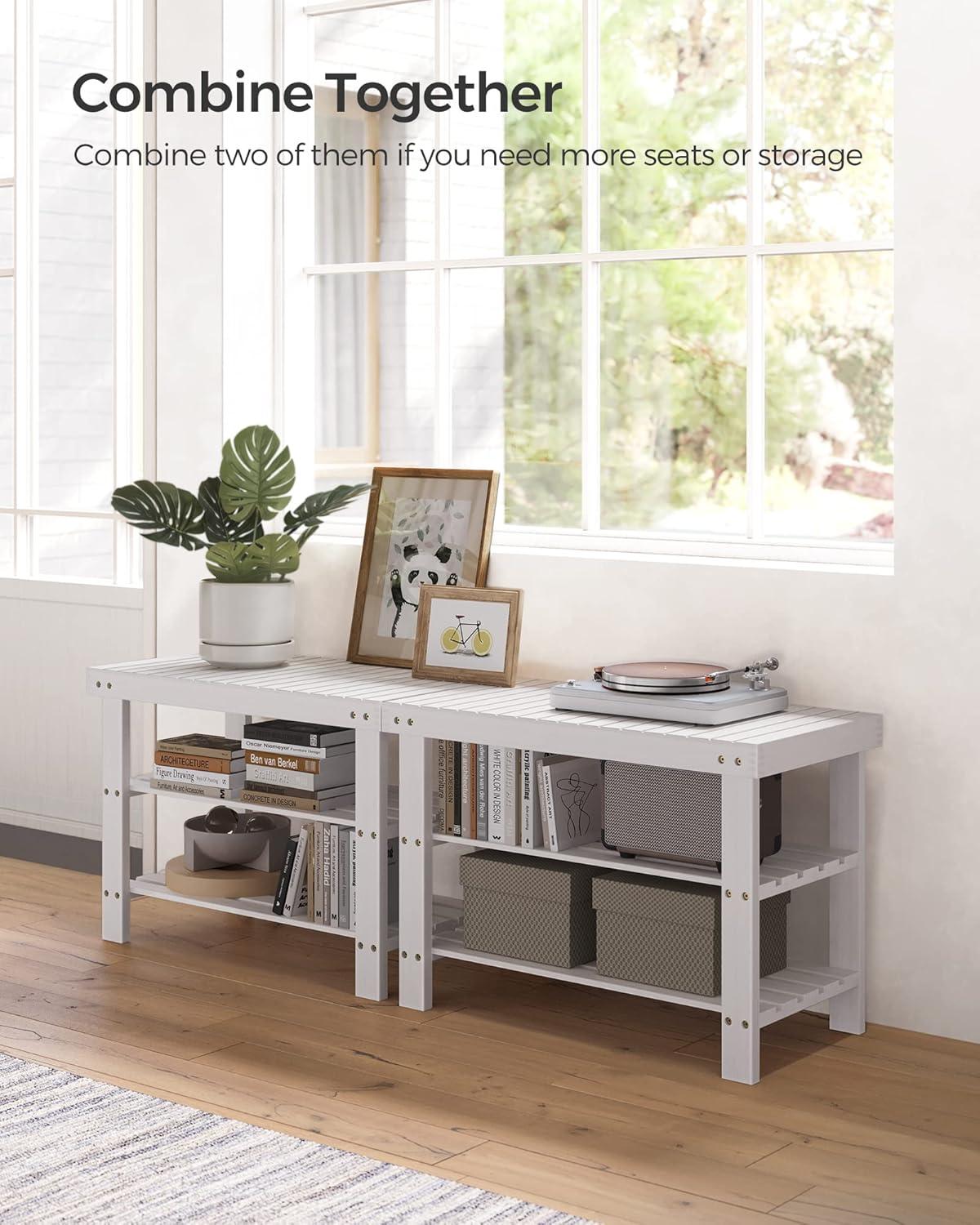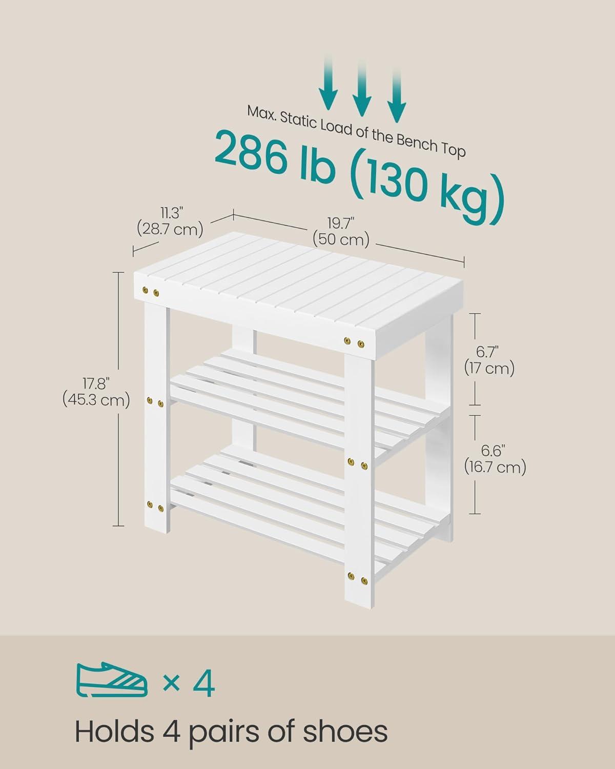 SONGMICS Shoe Rack Bench, 3-Tier Bamboo Shoe Storage Organizer, Entryway Bench, Holds Up to 286 lb, 11.3 x 27.6 x 17.8 Inches, for Entryway Bathroom Bedroom, Natural ULBS04N(Cloud White)