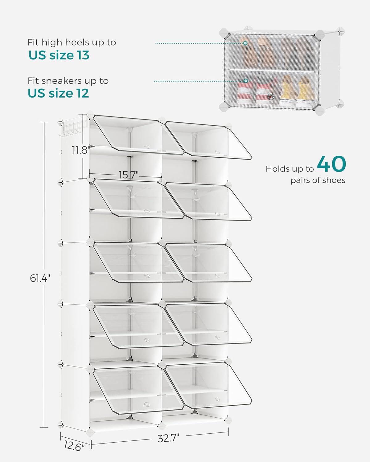 imageSONGMICS Shoe Rack Organizer 8Tier Shoe Storage Cabinet for Closet and Entryway Holds 32 Pairs of Shoes Adjustable Cloud White and Trasparent ULPC034W01Cloud White  Trasparent