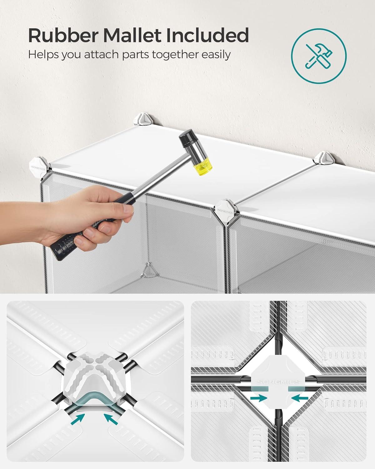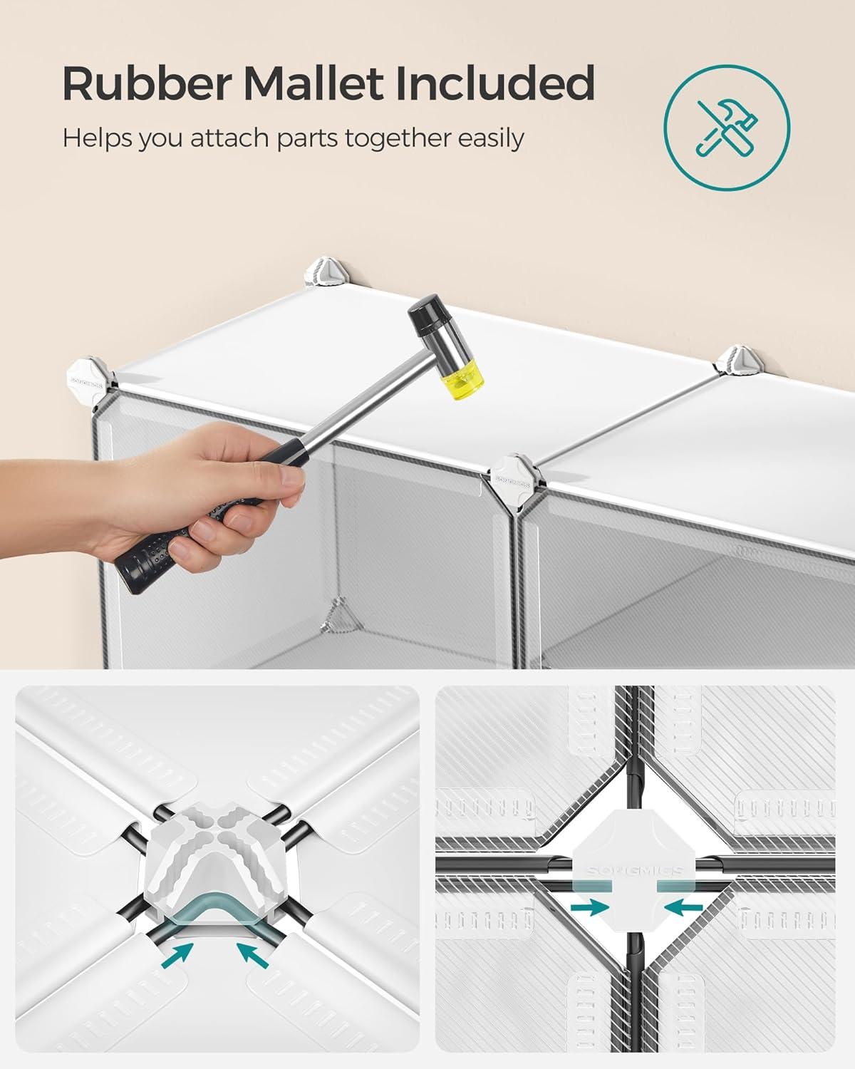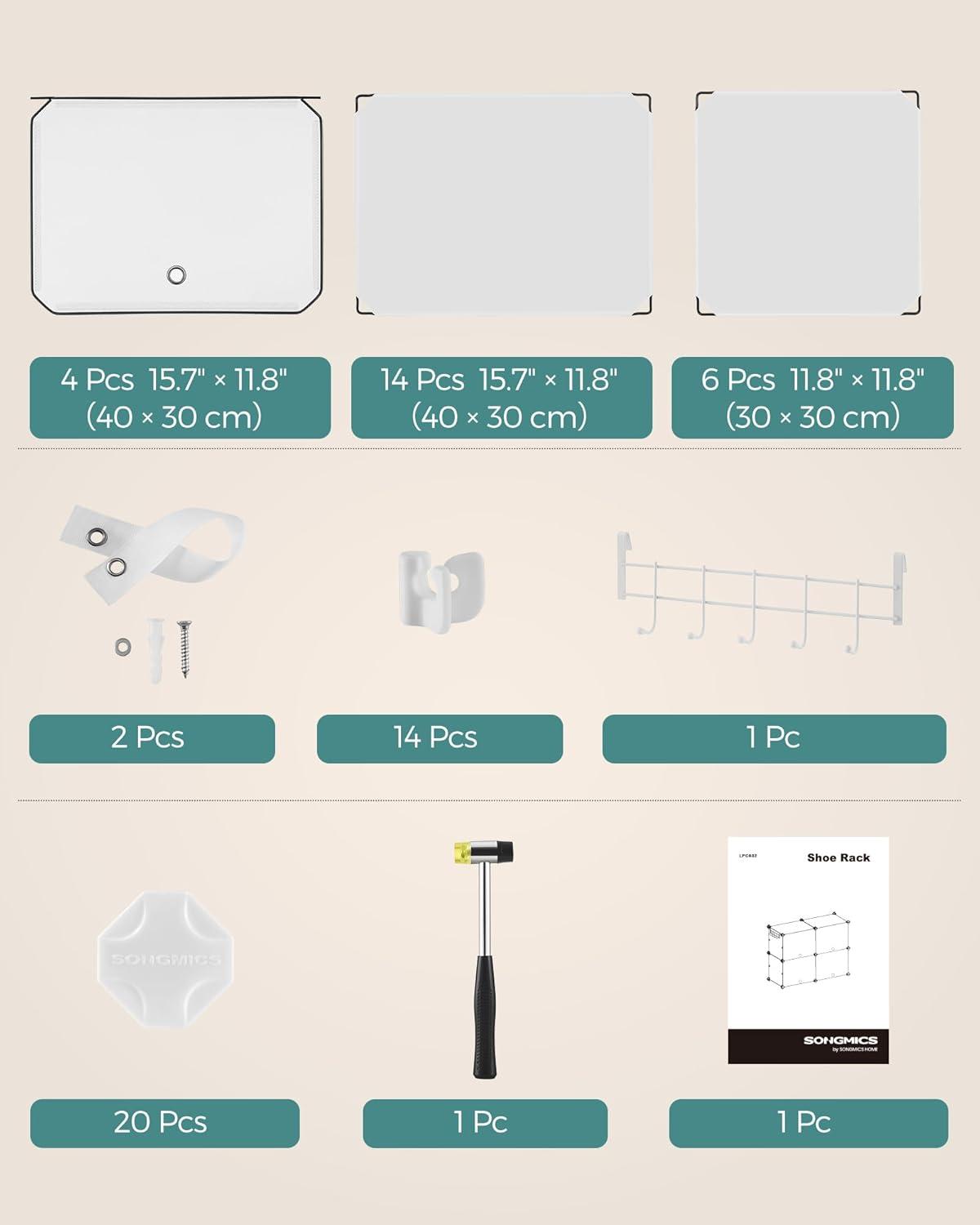 Easy Assembly and Secure Connection: With the included hammer, you can assemble your shoe rack quickly, ensuring each connector and panel fits tightly for a secure, wobble-free storage solution