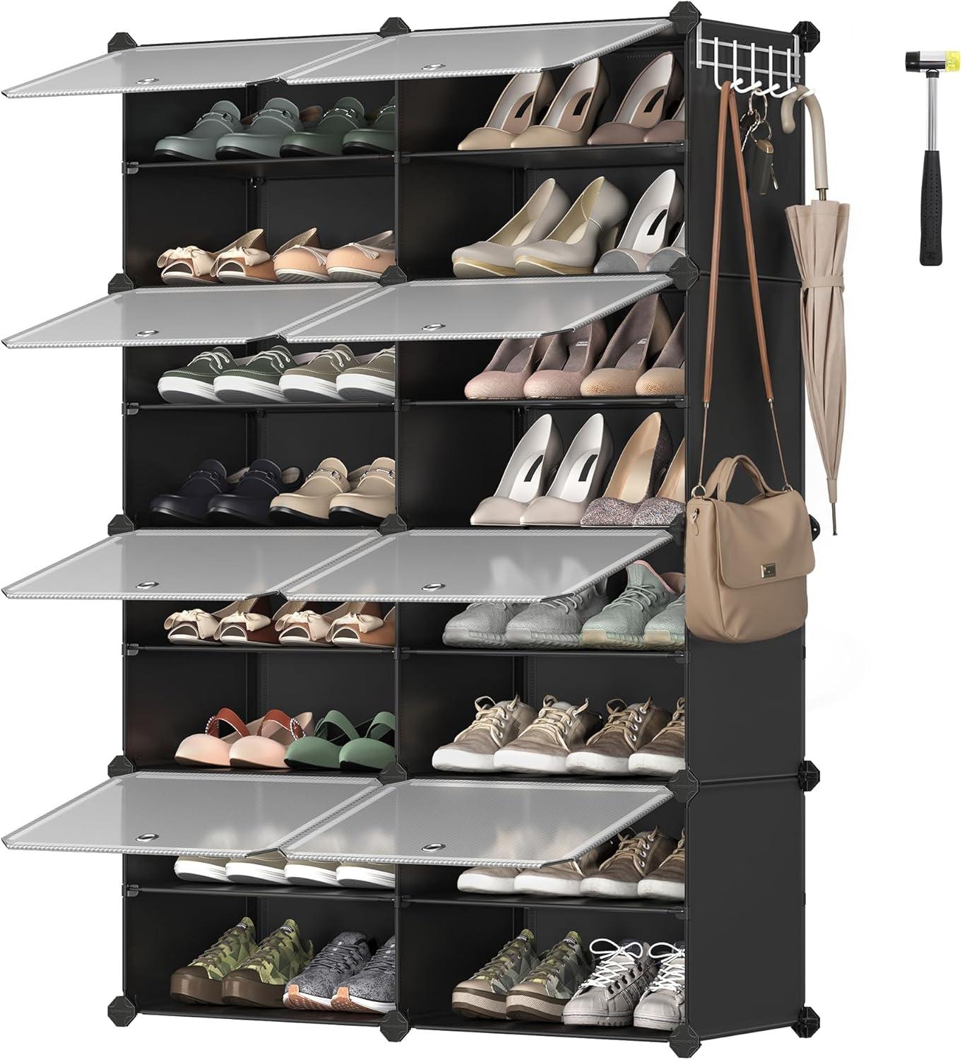 8-Tier Large Capacity: Store up to 32 pairs of shoes, from high heels and boots to trainers and slippers, with handy side hooks for hanging hats or leads