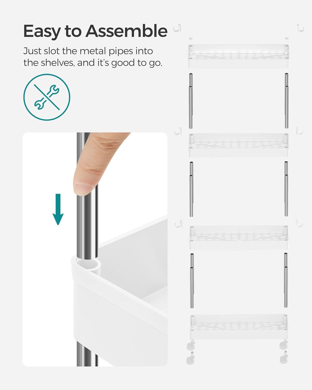 Be the first to review “SONGMICS Slim Storage Cart, 4-Tier Rolling Cart, Narrow Utility Cart on Wheels, 6 Hooks, 360° Swivel Wheels, Lockable, Steel Frame, Bathroom, Kitchen, Office, Dove Gray UKSC008G01(Cloud White)”