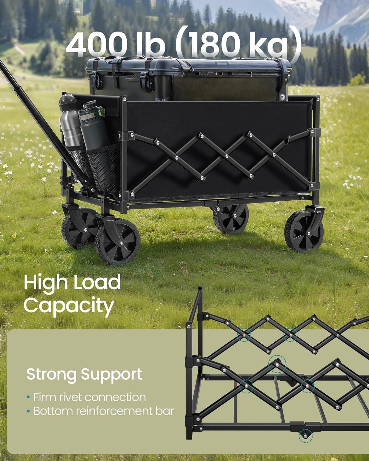 【ROBUST AND STRONG】With firm rivet connections, reinforcing beams at the bottom, premium steel, and 600D Oxford fabric, this garden wagon boasts great sturdiness and a high load capacity of up to 330 lb
