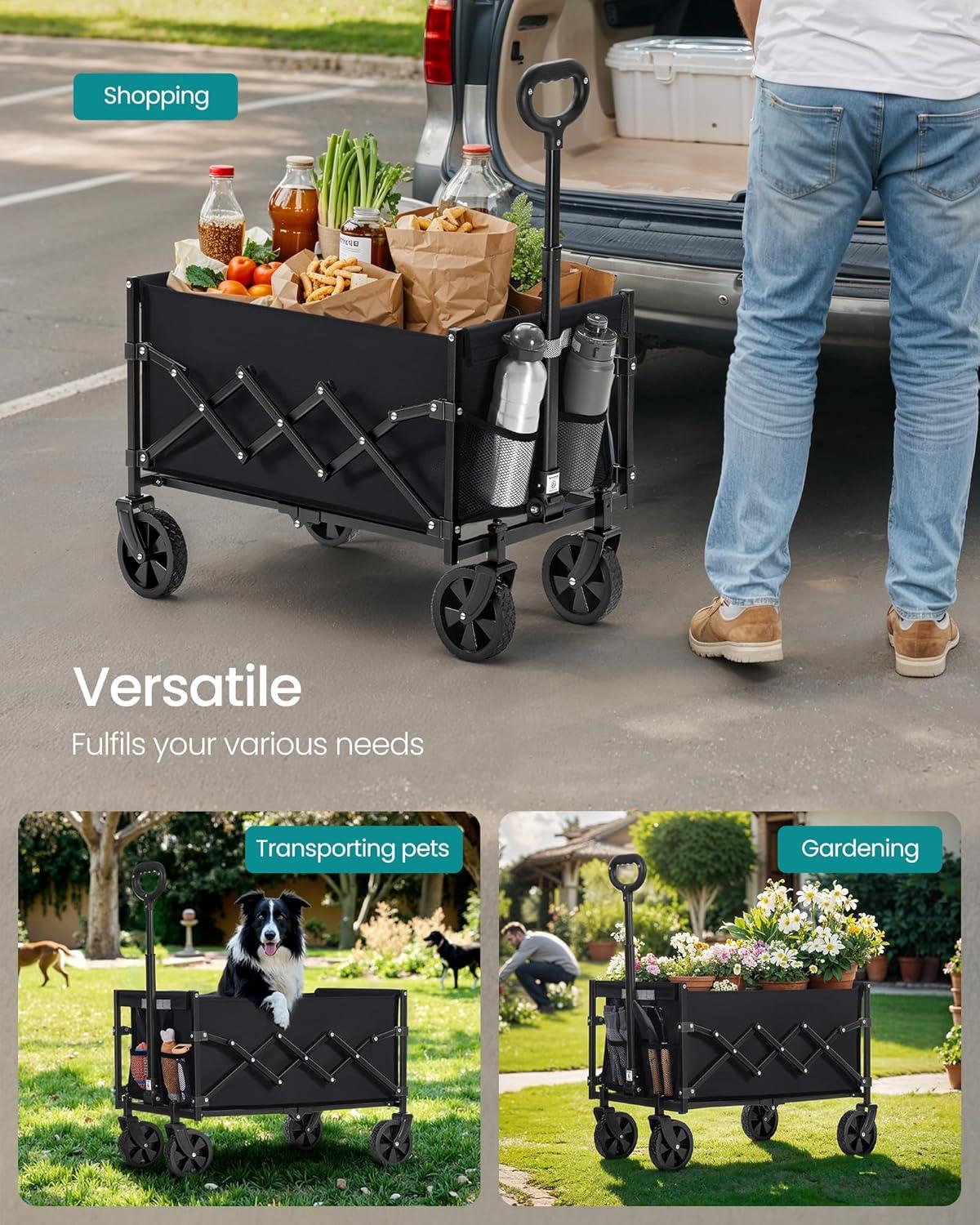 【VERSATILE USE】Whether you're working in the garden like a pro, transporting groceries home, or taking your snacks and utensils to a picnic or camping trip, this camp wagon has you covered