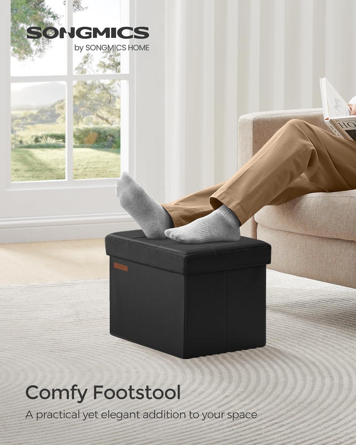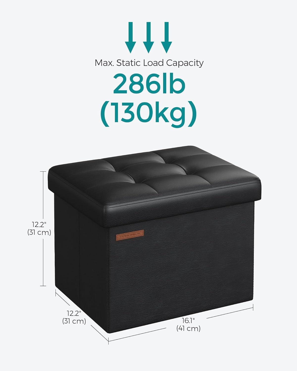 SONGMICS Small Folding Storage Ottoman, Foot Rest Stool, Cube Footrest, Synthetic Leather, 12.2 x 16.1 x 12.2 Inches, 286 lb Capacity, for Living Room, Bedroom, Dorm, Coffee Brown ULSF100K01(Ink Black)