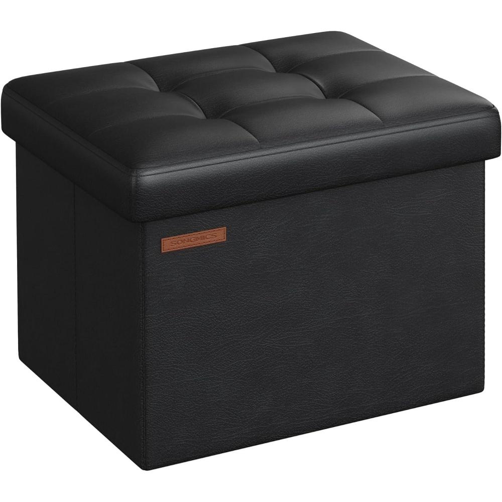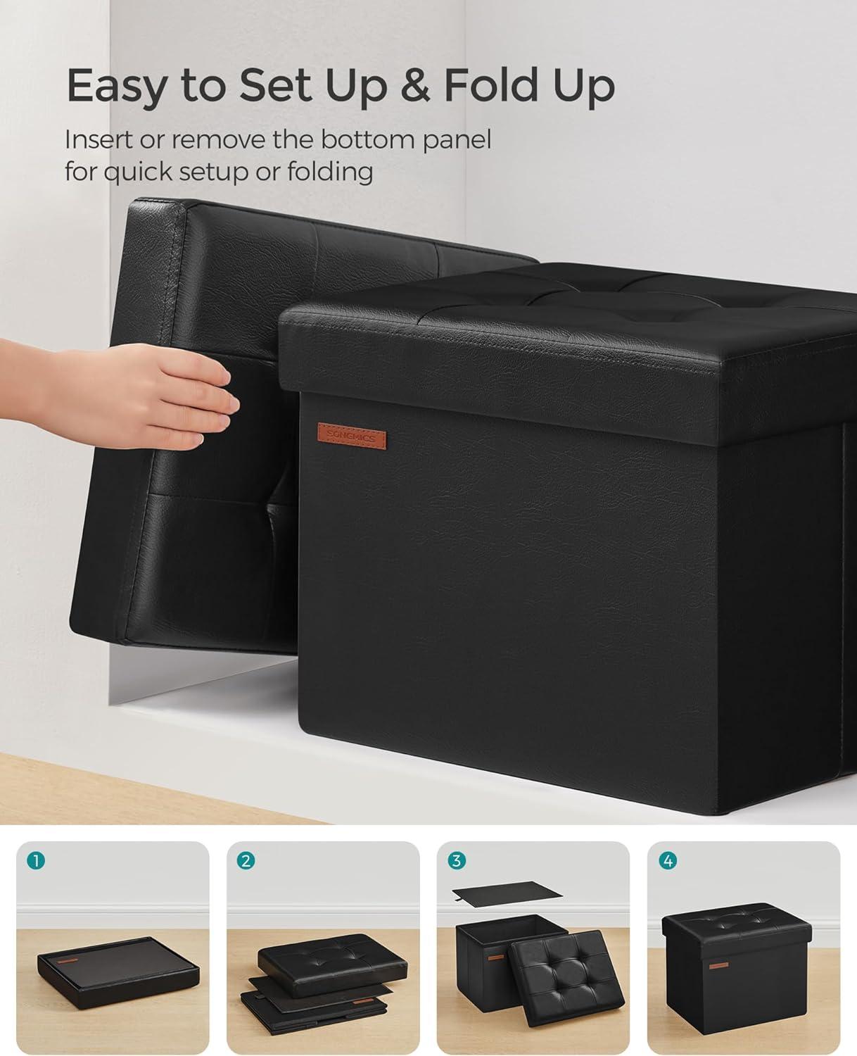 imageSONGMICS Small Folding Storage Ottoman Foot Rest Stool Cube Footrest Synthetic Leather 122 x 161 x 122 Inches 286 lb Capacity for Living Room Bedroom Dorm Coffee Brown ULSF100K01Ink Black