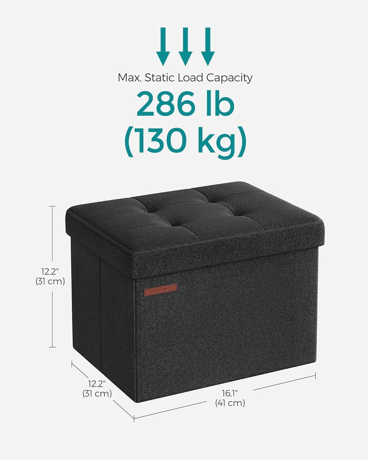 SONGMICS Small Folding Storage Ottoman, Set of 2, Foot Rest Stool, Cube Footrest, 12.2 x 16.1 x 12.2 Inches, 286 lb Load Capacity, for Living Room, Bedroom, Home Office, Dorm, Ink Black ULSF102B21