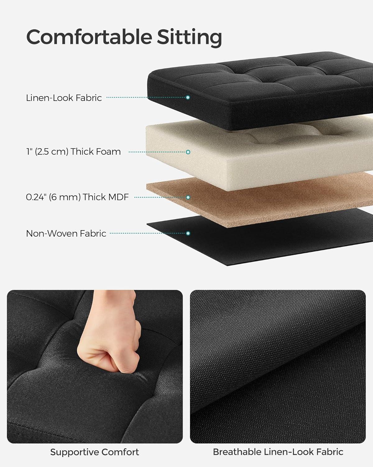 [Optimal Sitting Comfort] With 1″ (2.5 cm) thick foam padding and breathable linen-look fabric, these storage benches offer the optimal comfort for sitting