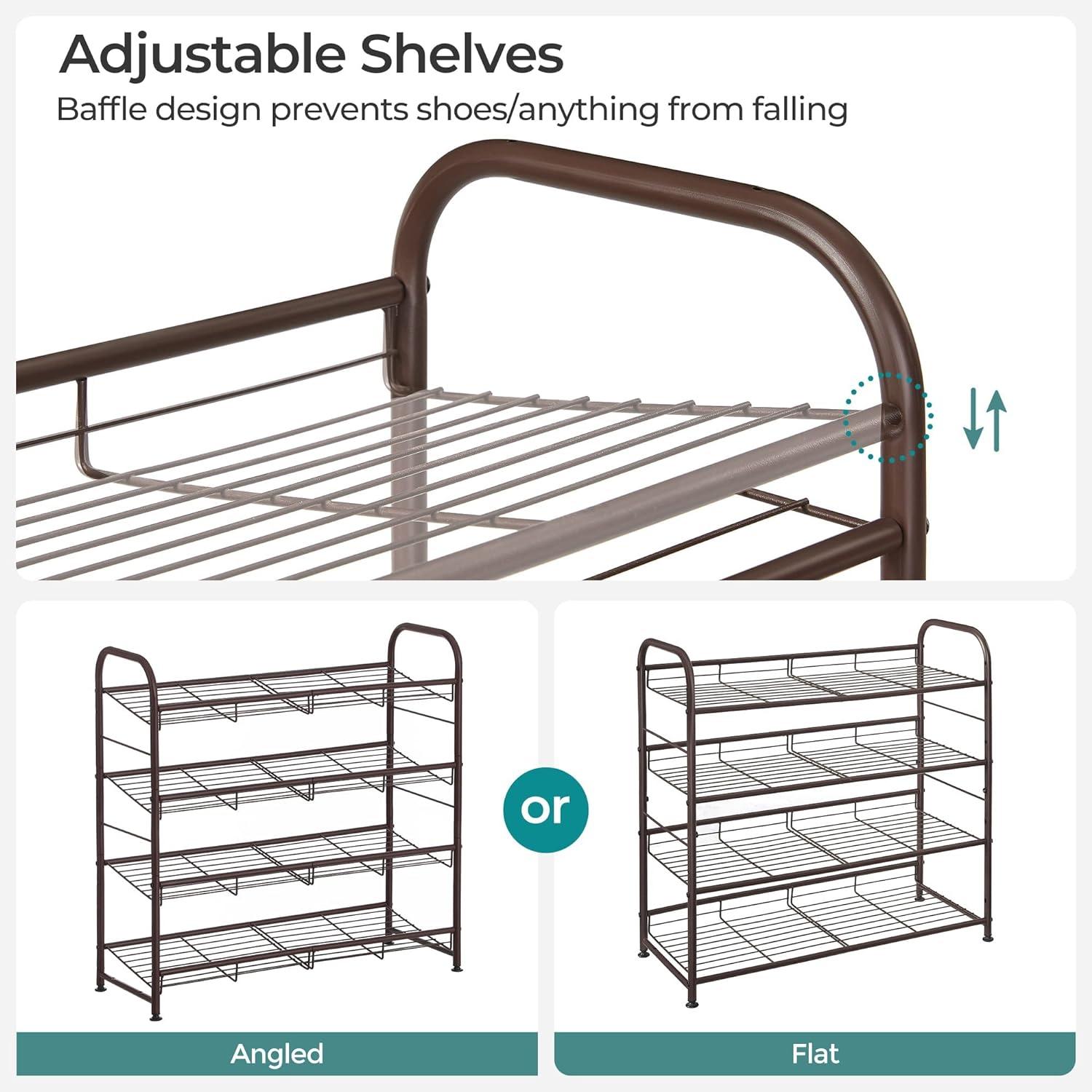 SONGMICS Stackable Shoe Rack, 4 Tier Metal Shoes Rack Storage Shelf, Holds up to 20 Pairs Shoes, Adjustable Slanted Shelves Tower Organizer for Closet Entryway Small Spaces, Bronze(Bronze)