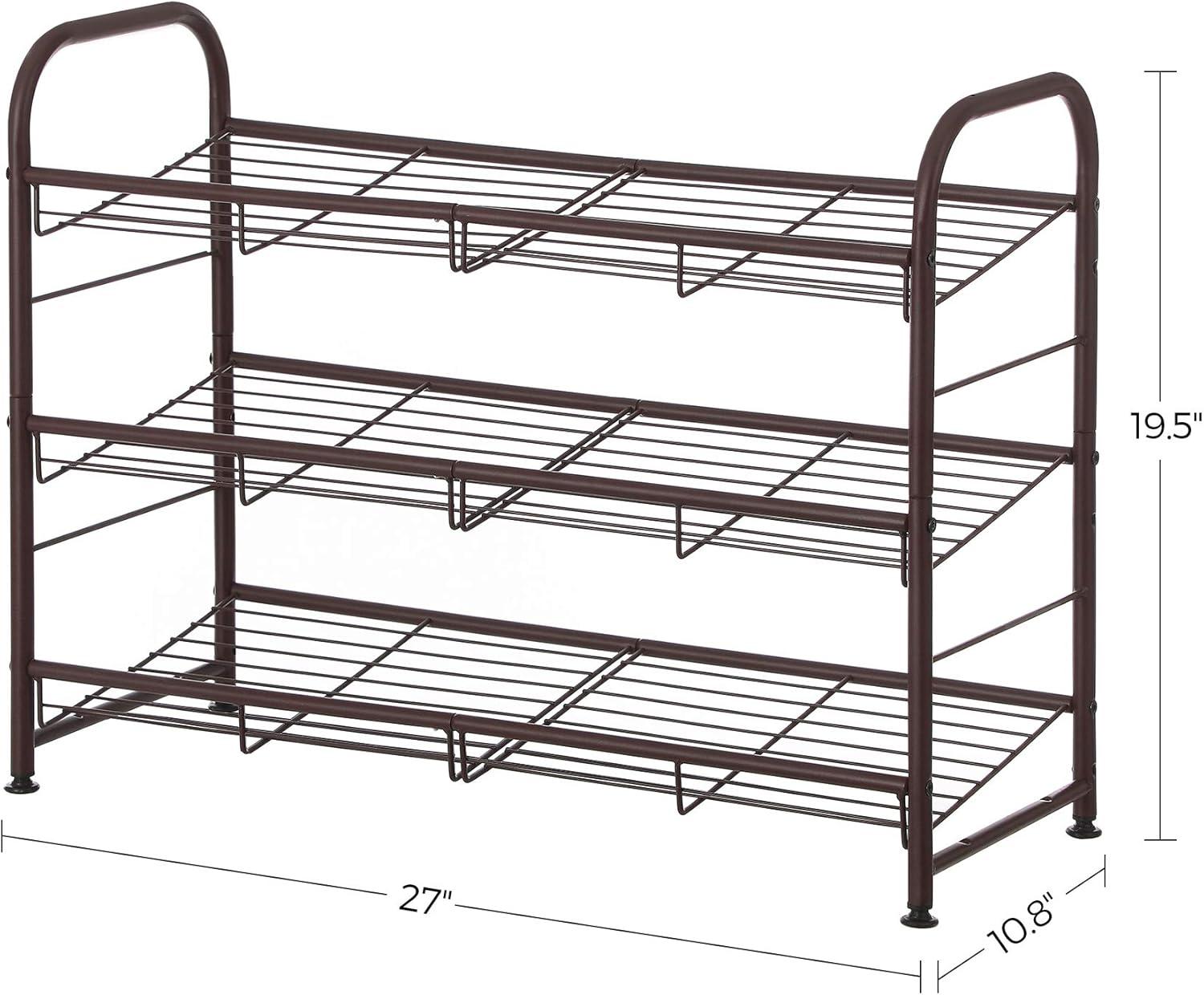 imageSONGMICS Stackable Shoe Rack 4 Tier Metal Shoes Rack Storage Shelf Holds up to 20 Pairs Shoes Adjustable Slanted Shelves Tower Organizer for Closet Entryway Small Spaces BronzeBronze