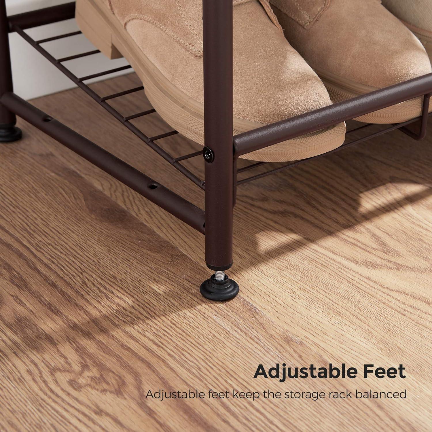 SONGMICS Stackable Shoe Rack, 4 Tier Metal Shoes Rack Storage Shelf, Holds up to 20 Pairs Shoes, Adjustable Slanted Shelves Tower Organizer for Closet Entryway Small Spaces, Bronze(Black)