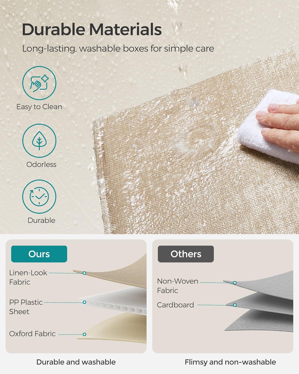 [Durable & Odorless] Made of sturdy linen-look fabric, Oxford fabric lining, and odor-free PP plastic sheets, these storage baskets can handle the demands of everyday use and provide a clean and fresh storage environment