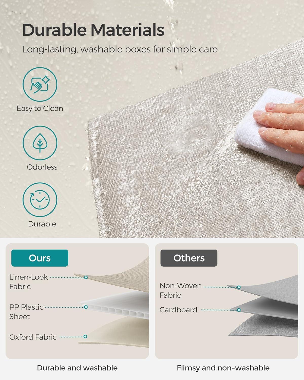 [Durable & Odorless] Made of sturdy linen-look fabric, Oxford fabric lining, and odor-free PP plastic sheets, these storage baskets can handle the demands of everyday use and provide a clean and fresh storage environment