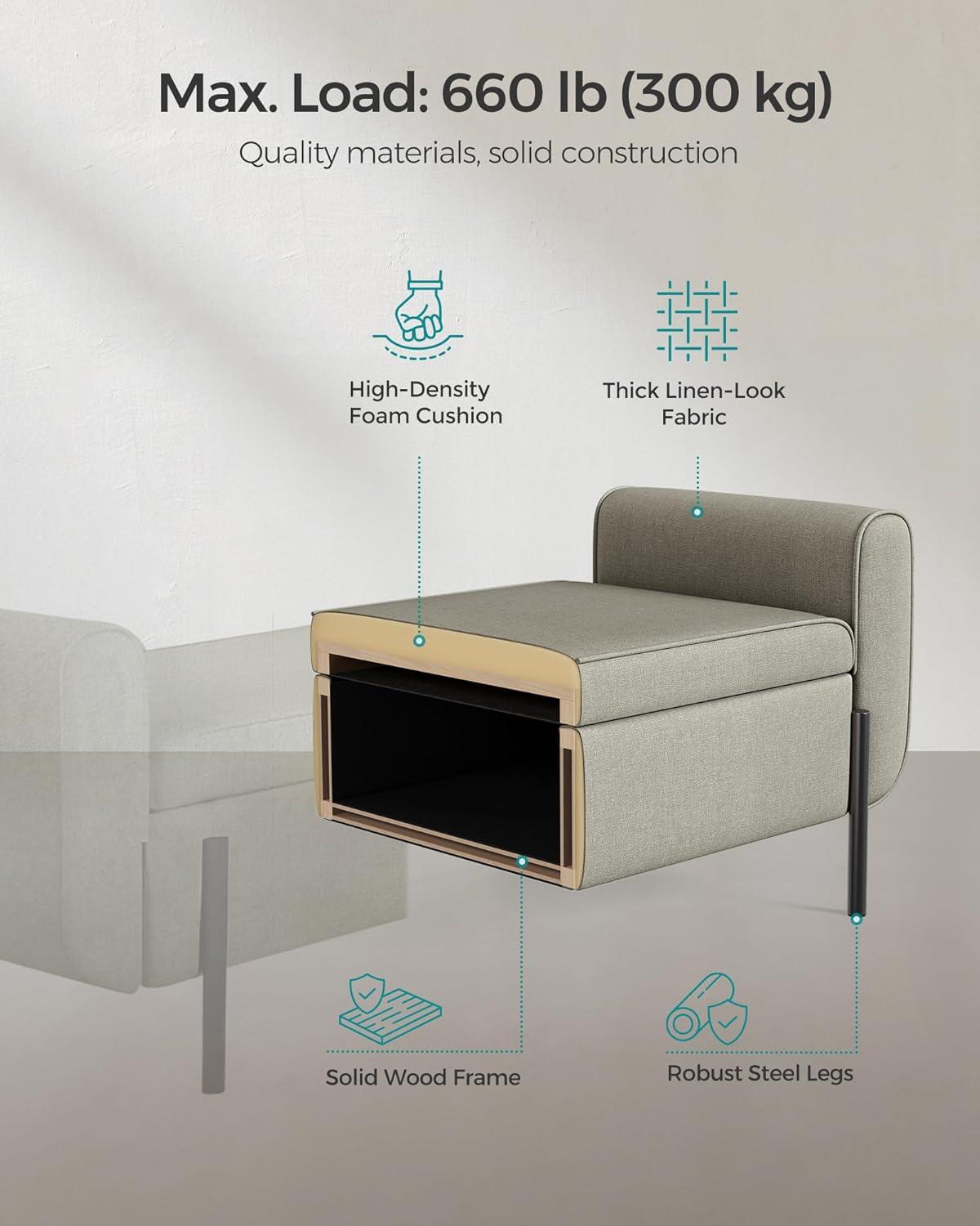 [Sturdy & Stylish] With a solid wood frame and steel legs, this storage bench boasts stability and durability, capable of holding up to 660 lb. It also has a sleek, modern design that complements your home decor