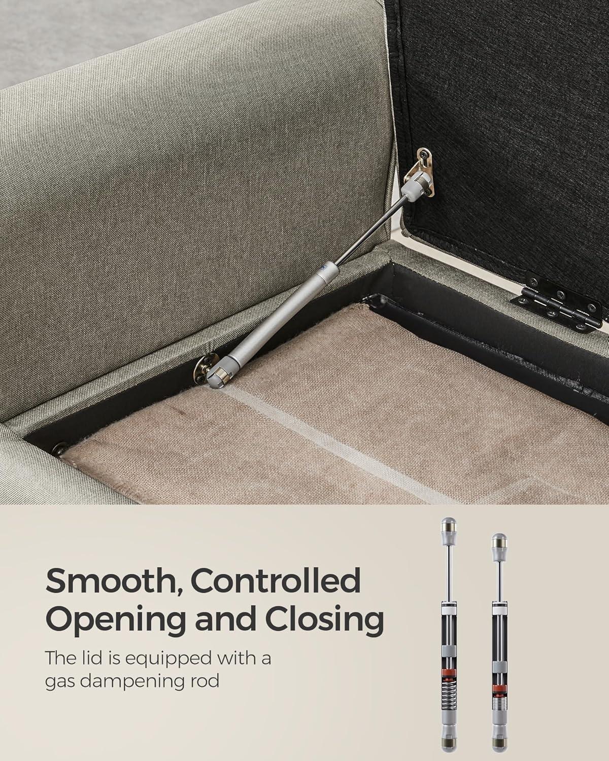 [Smooth Lid Operation] The lid of this bench for bedroom is equipped with a gas dampening rod for smooth opening and closing, providing a safer and more convenient access to the storage space
