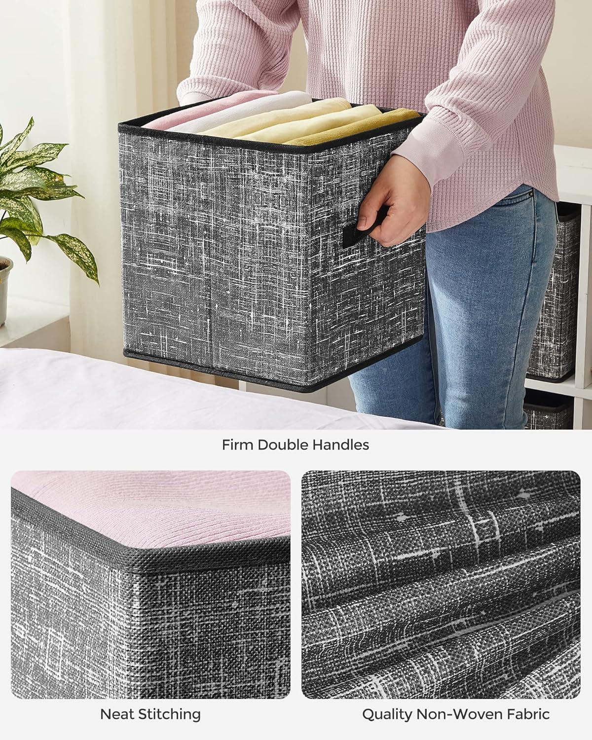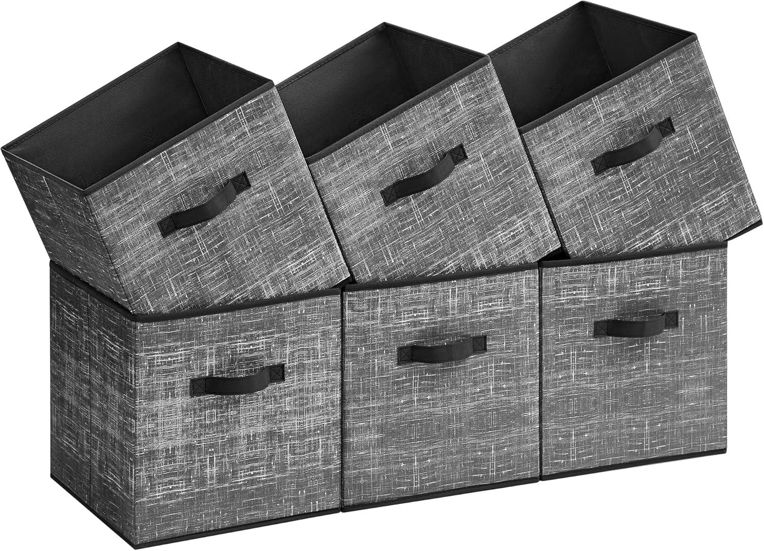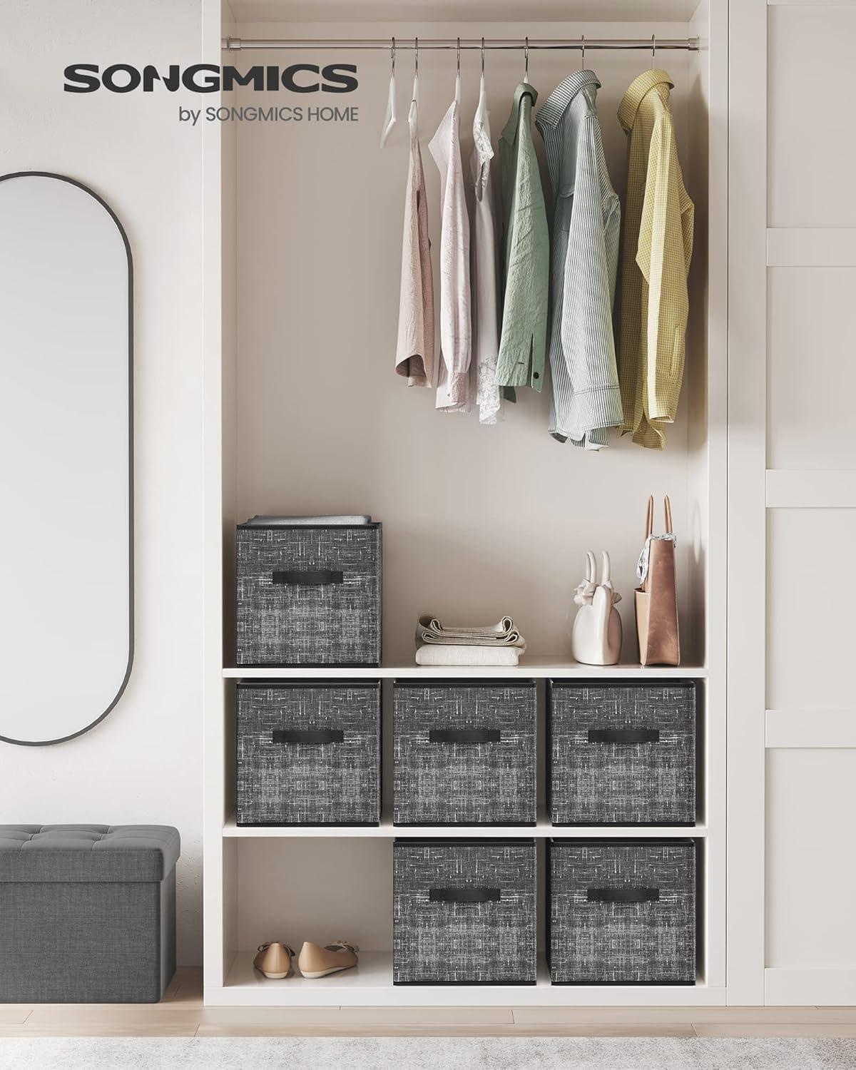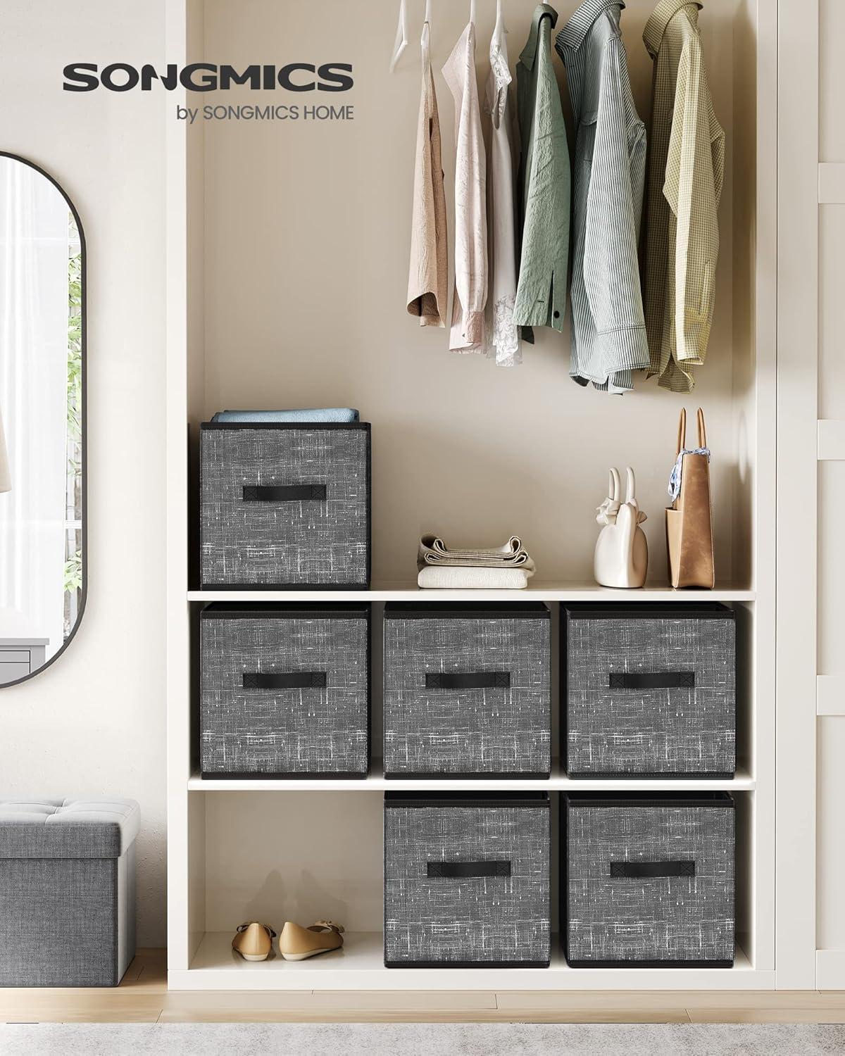 SONGMICS Storage Cubes, 11-Inch Non-Woven Fabric Bins with Double Handles, Set of 6, Closet Organizers for Shelves, Foldable, for Clothes, Cattail Gray UROB26LG(Classic Black)