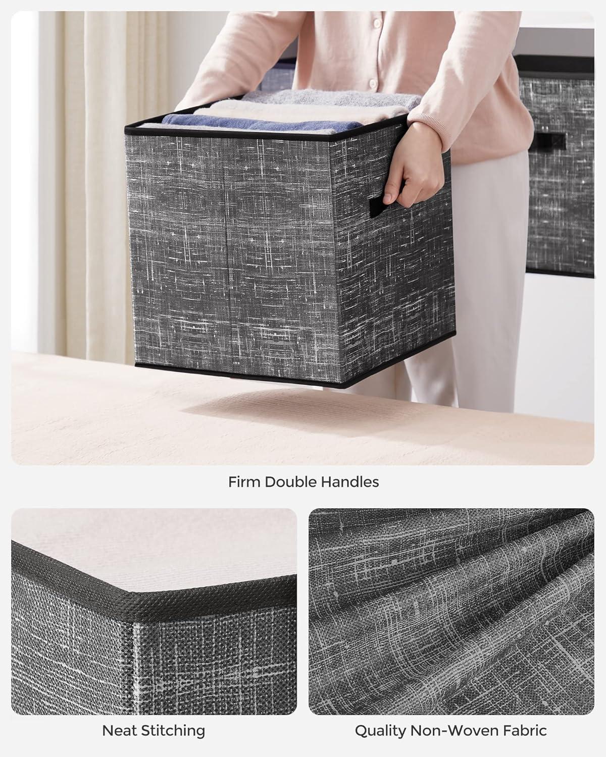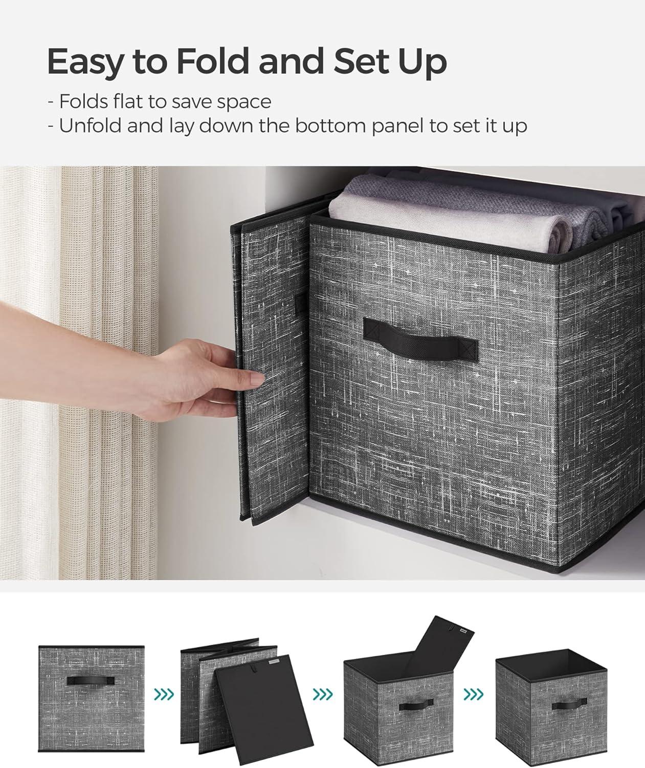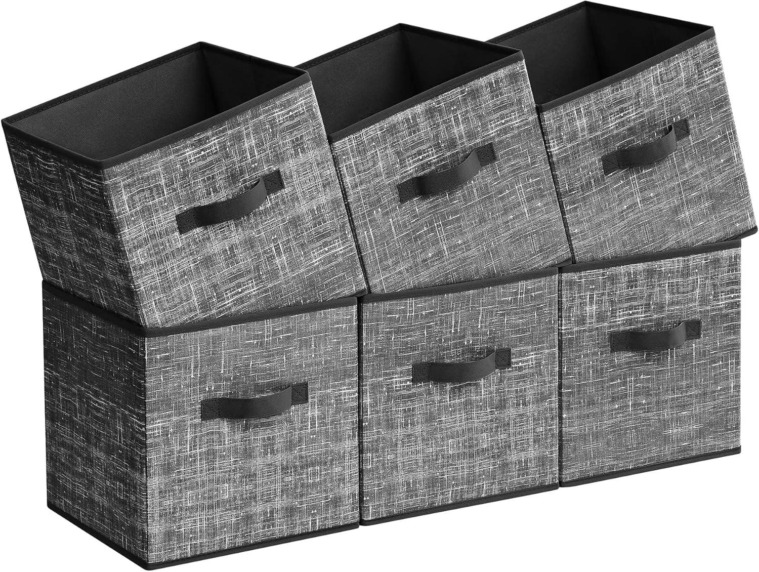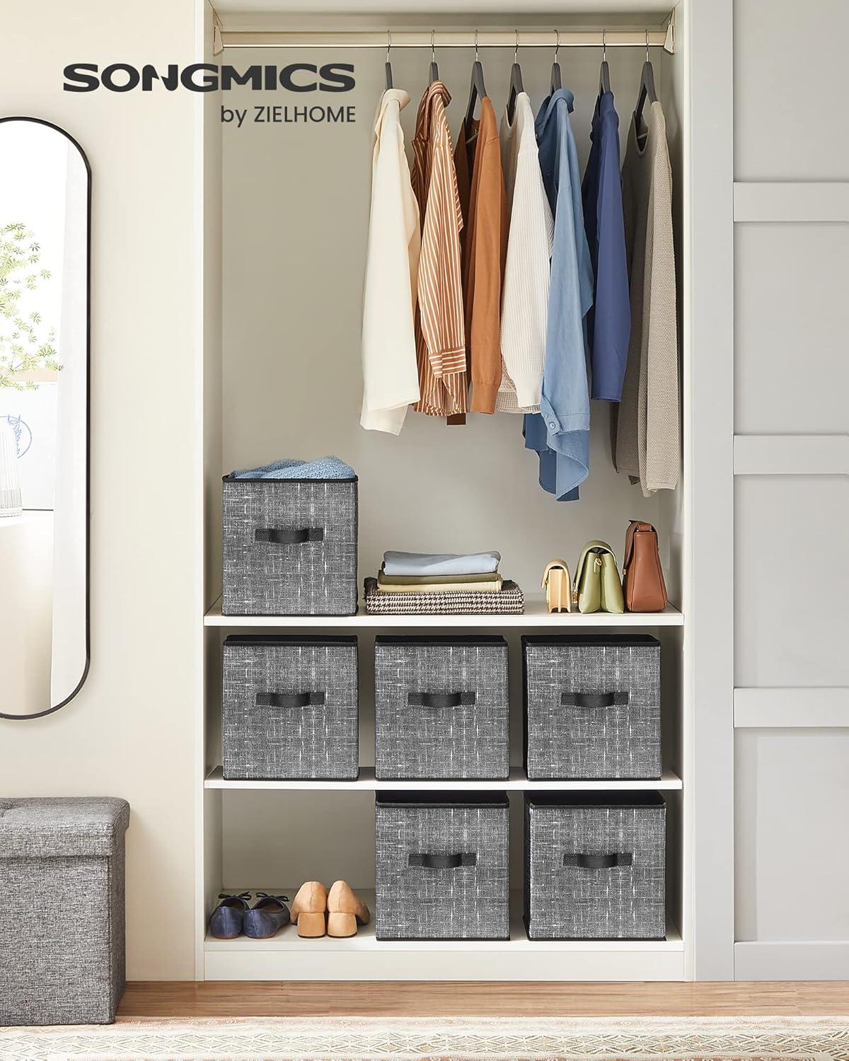 SONGMICS Storage Cubes, 11-Inch Non-Woven Fabric Bins with Double Handles, Set of 6, Closet Organizers for Shelves, Foldable, for Clothes, Cattail Gray UROB26LG(Classic Black)