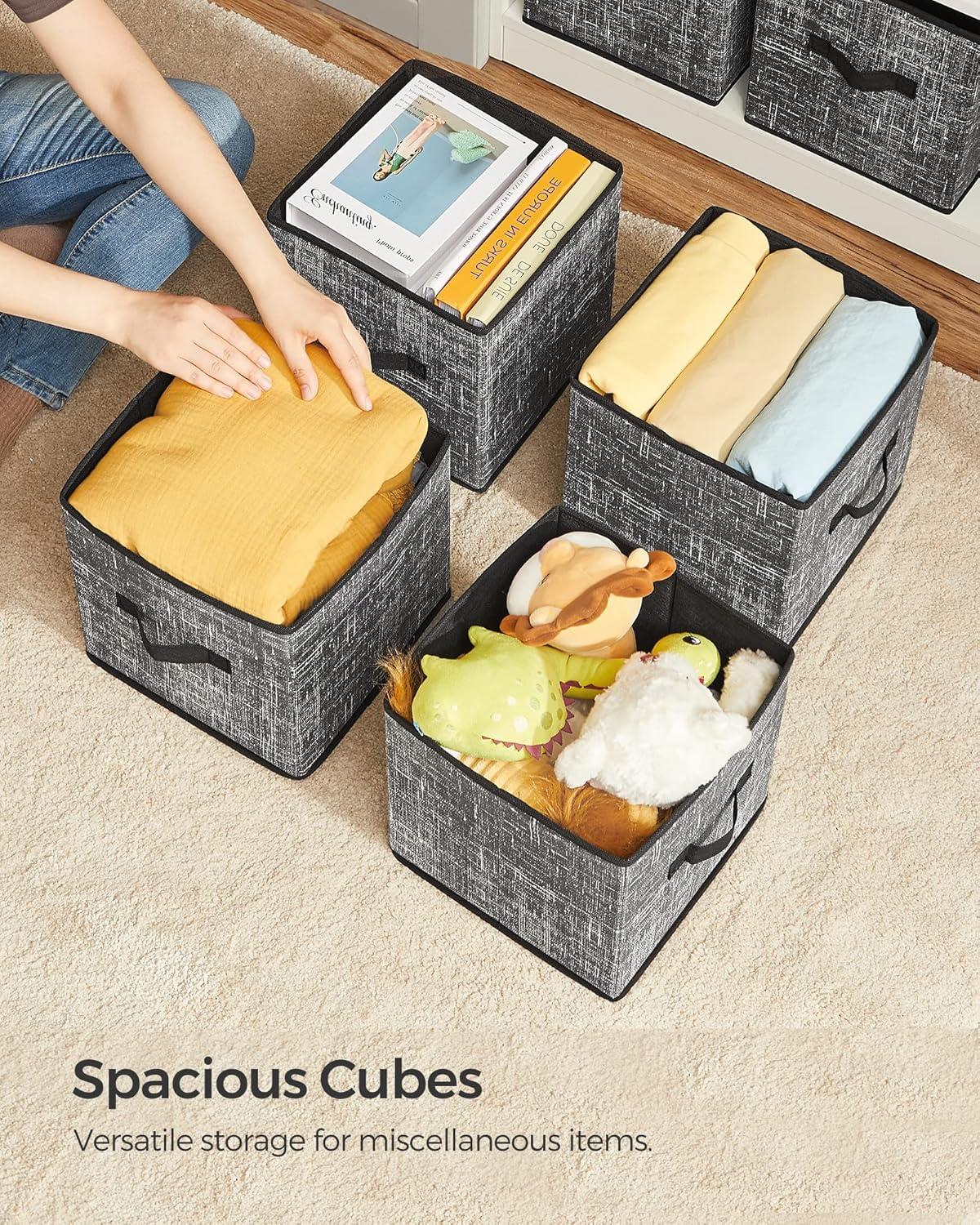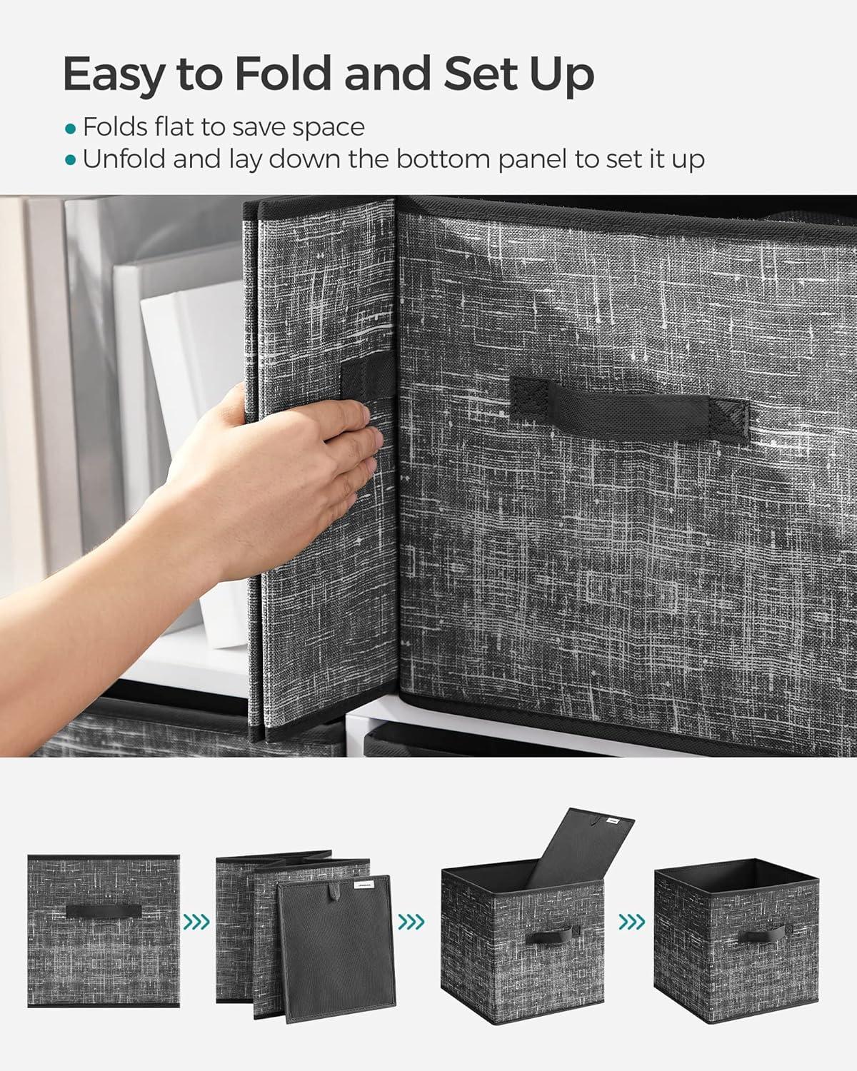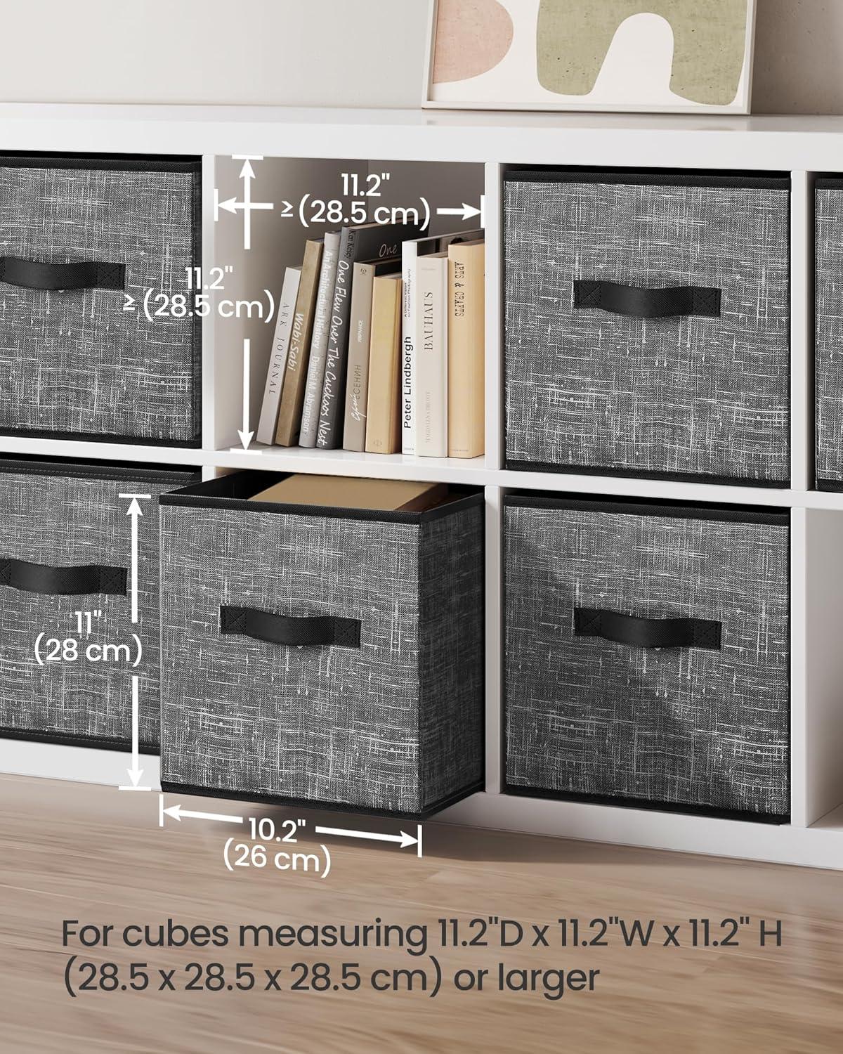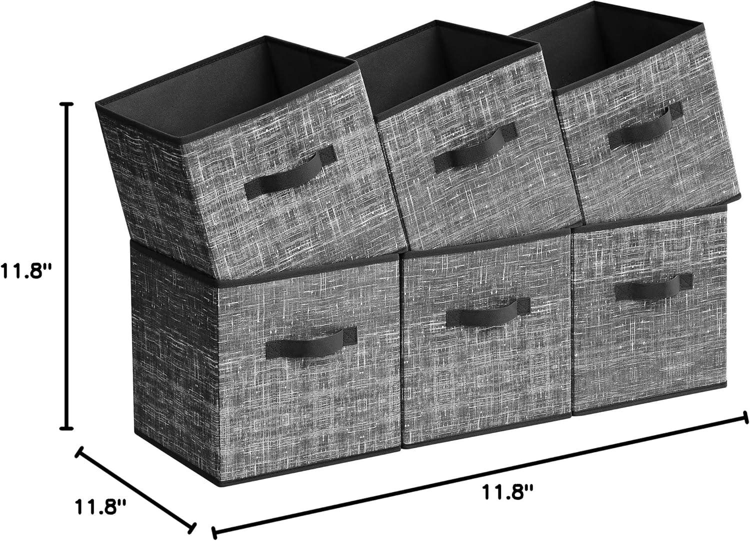 SONGMICS Storage Cubes, 11-Inch Non-Woven Fabric Bins with Double Handles, Set of 6, Closet Organizers for Shelves, Foldable, for Clothes, Cattail Gray UROB26LG(Classic Black)