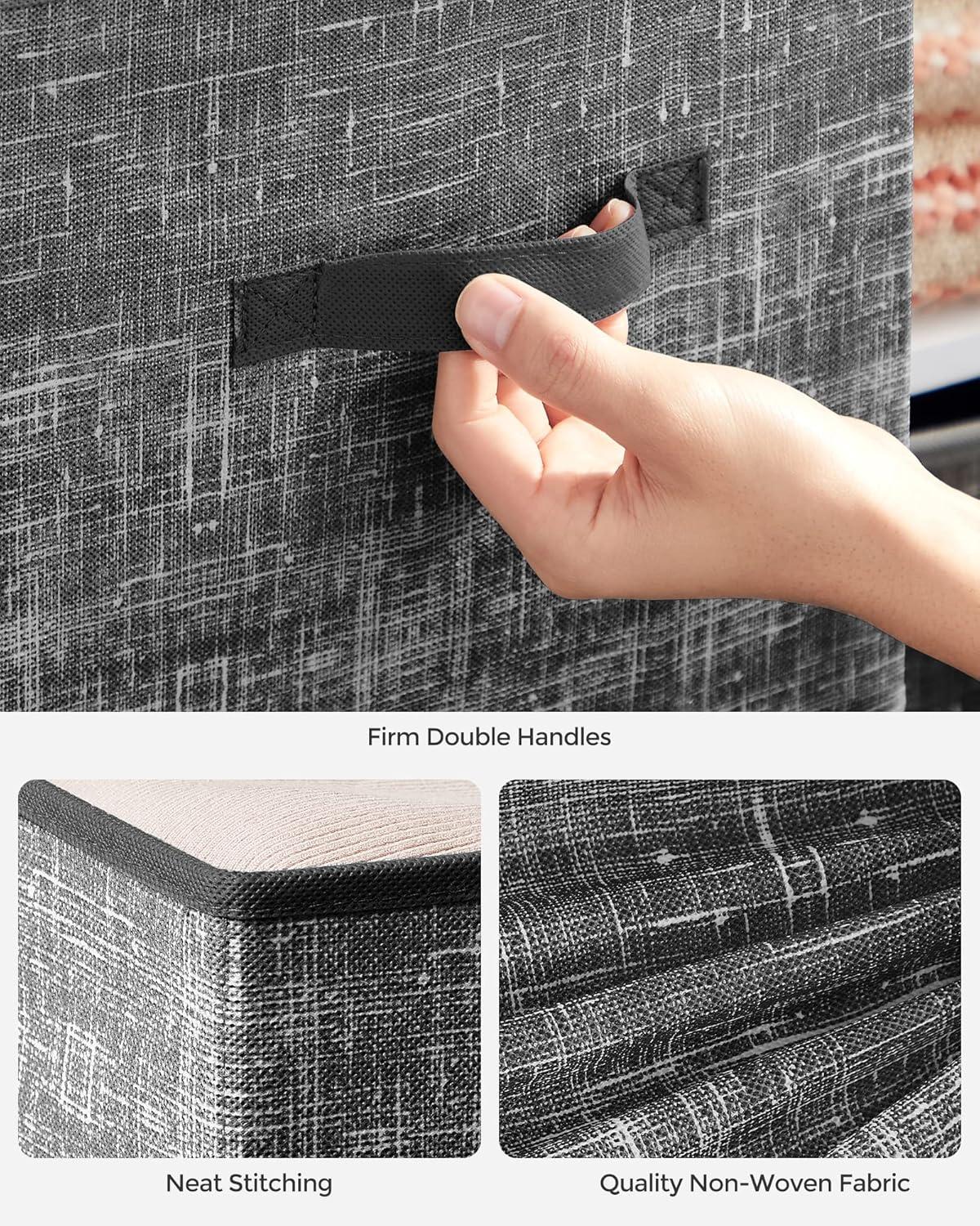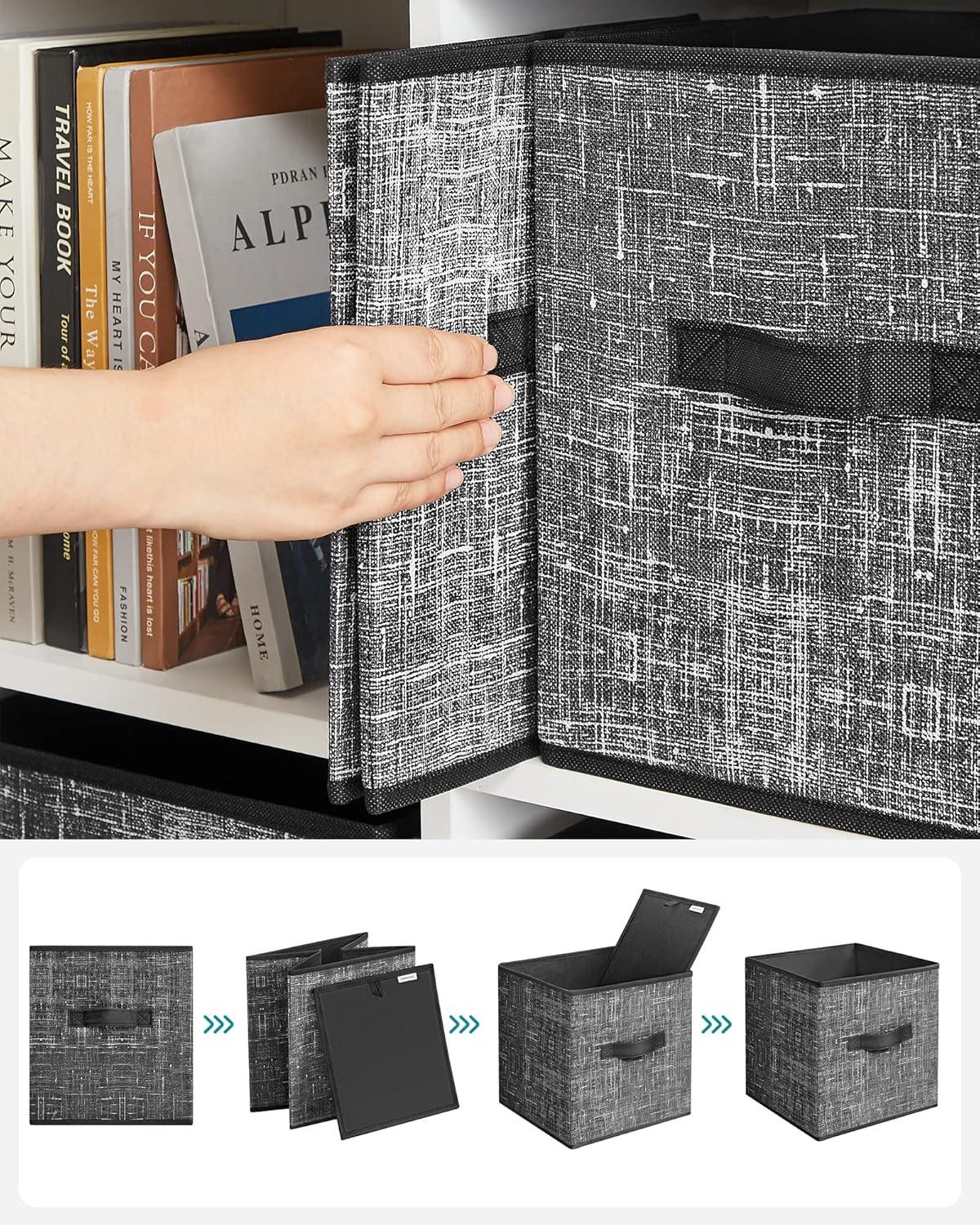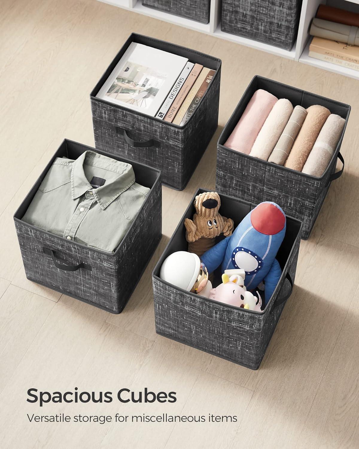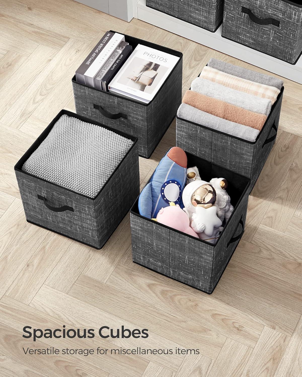 SONGMICS Storage Cubes, 11-Inch Non-Woven Fabric Bins with Double Handles, Set of 6, Closet Organizers for Shelves, Foldable, for Clothes, Cattail Gray UROB26LG(Classic Black)