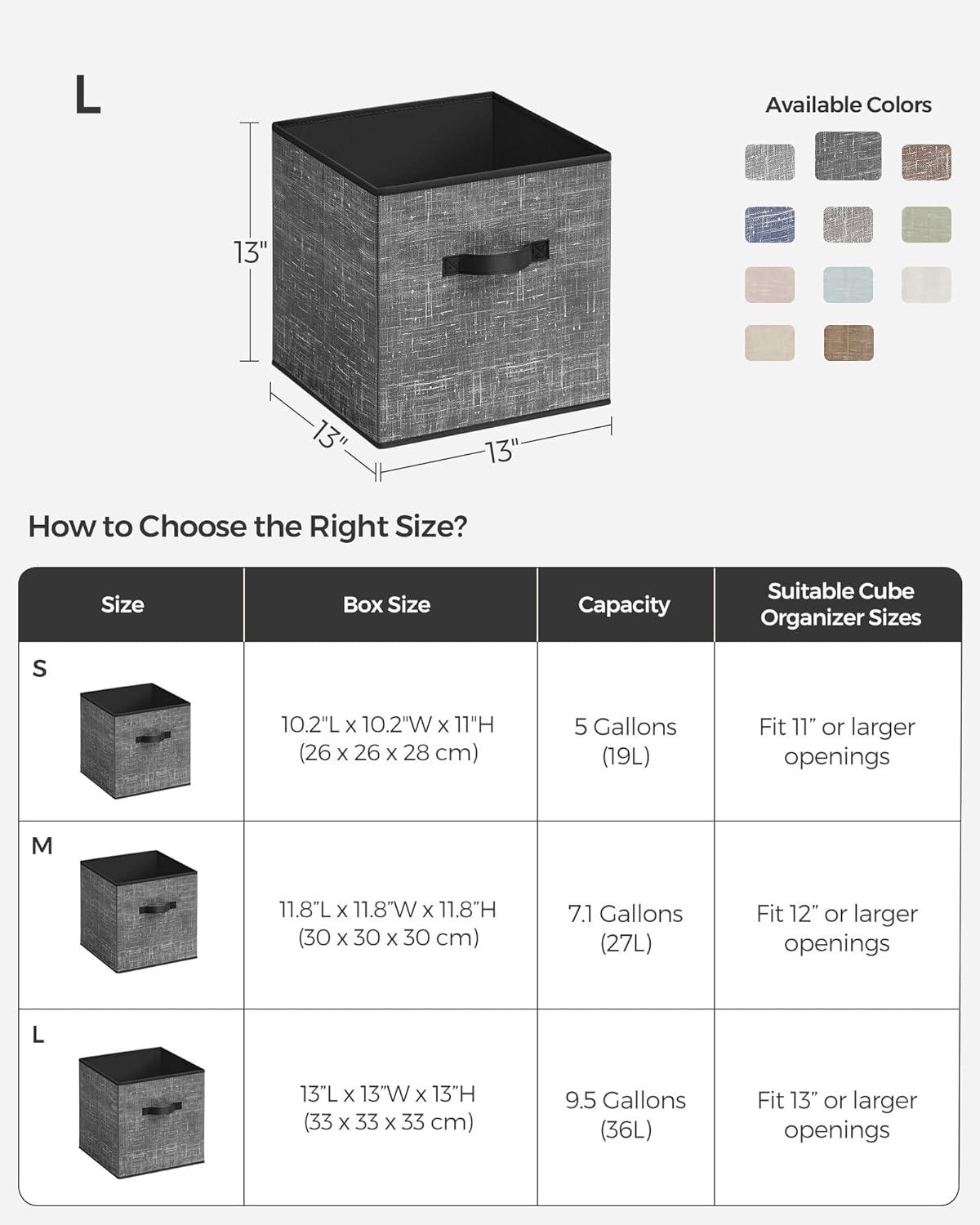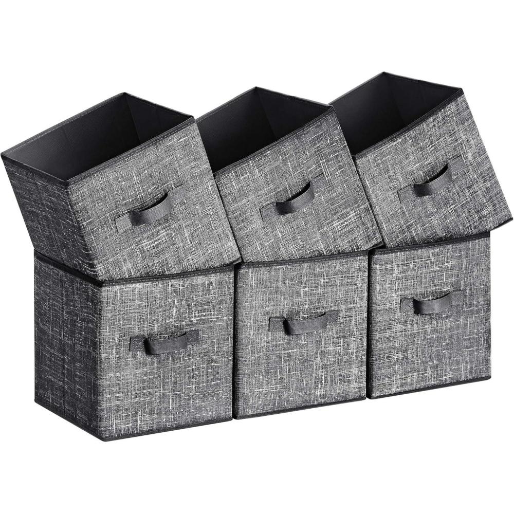[Durable and Stable] Organize your items with this set of 6 durable, stable storage cubes. Each box with two handles can hold up to 11 lb with a rigid structure that’s made with 80 g/m² non-woven fabric and thick cardboard