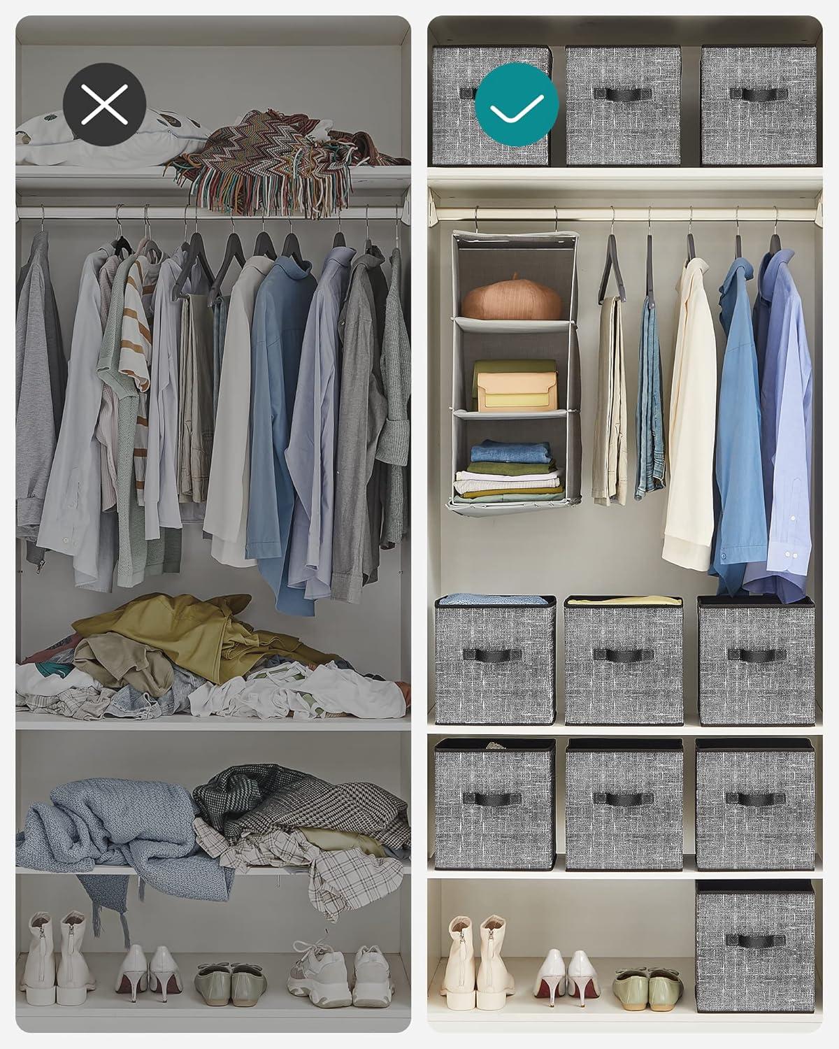 SONGMICS Storage Cubes, 11-Inch Non-Woven Fabric Bins with Double Handles, Set of 6, Closet Organizers for Shelves, Foldable, for Clothes, Cattail Gray UROB26LG(Cattail Gray)