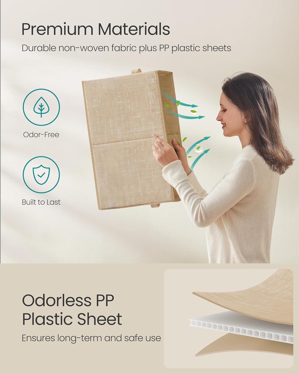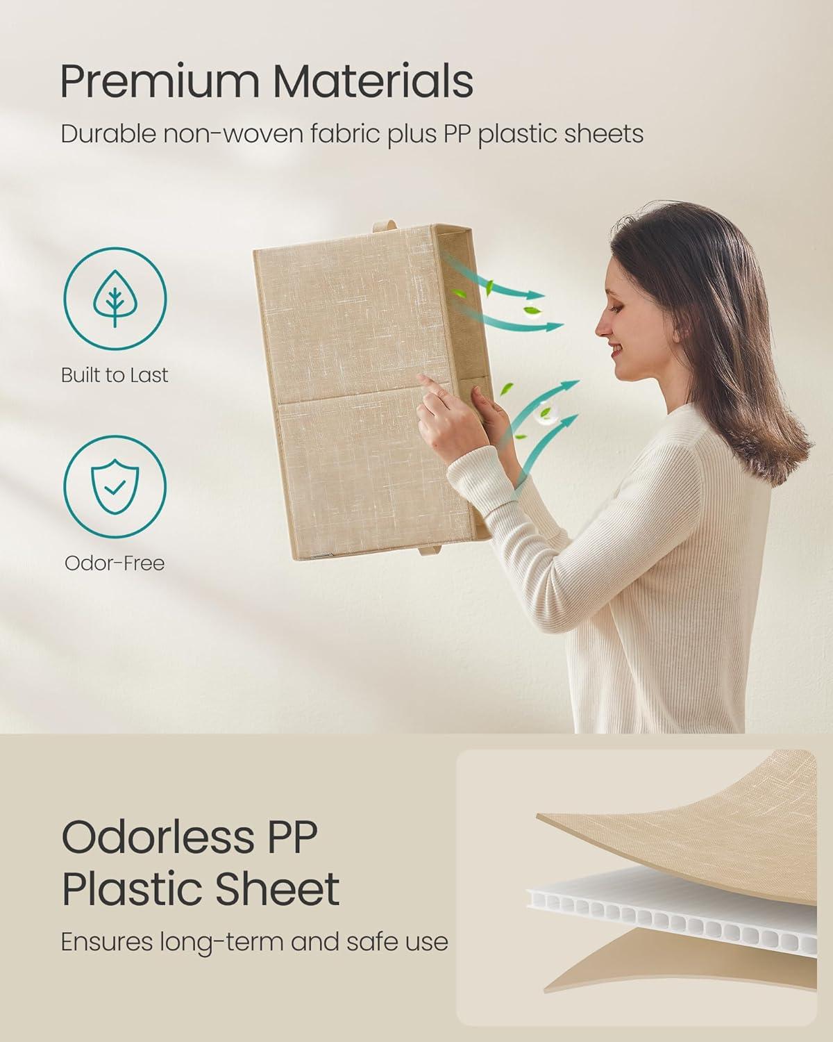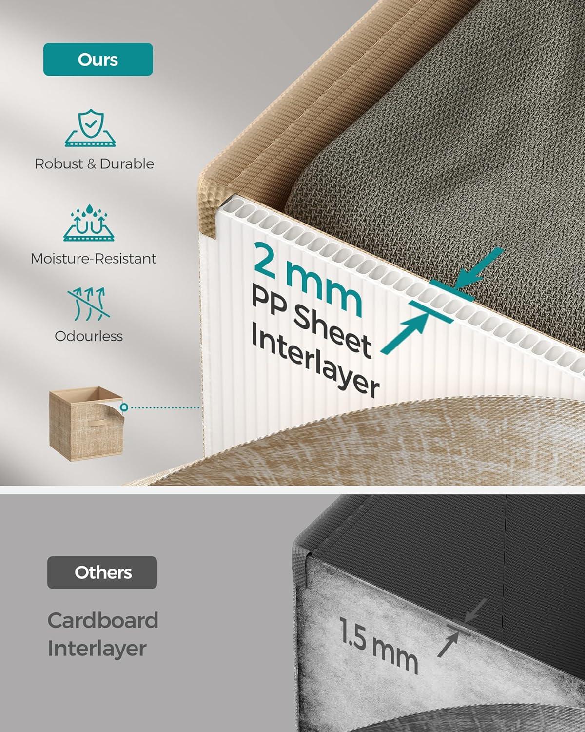 Durable and Stable: Organize your items with this set of 3 durable, stable storage cubes. Each box with two handles can hold up to 6.6 lb (3 kg) with a rigid structure that's made with 80 g/m² non-woven fabric and odorless pp plastic sheets