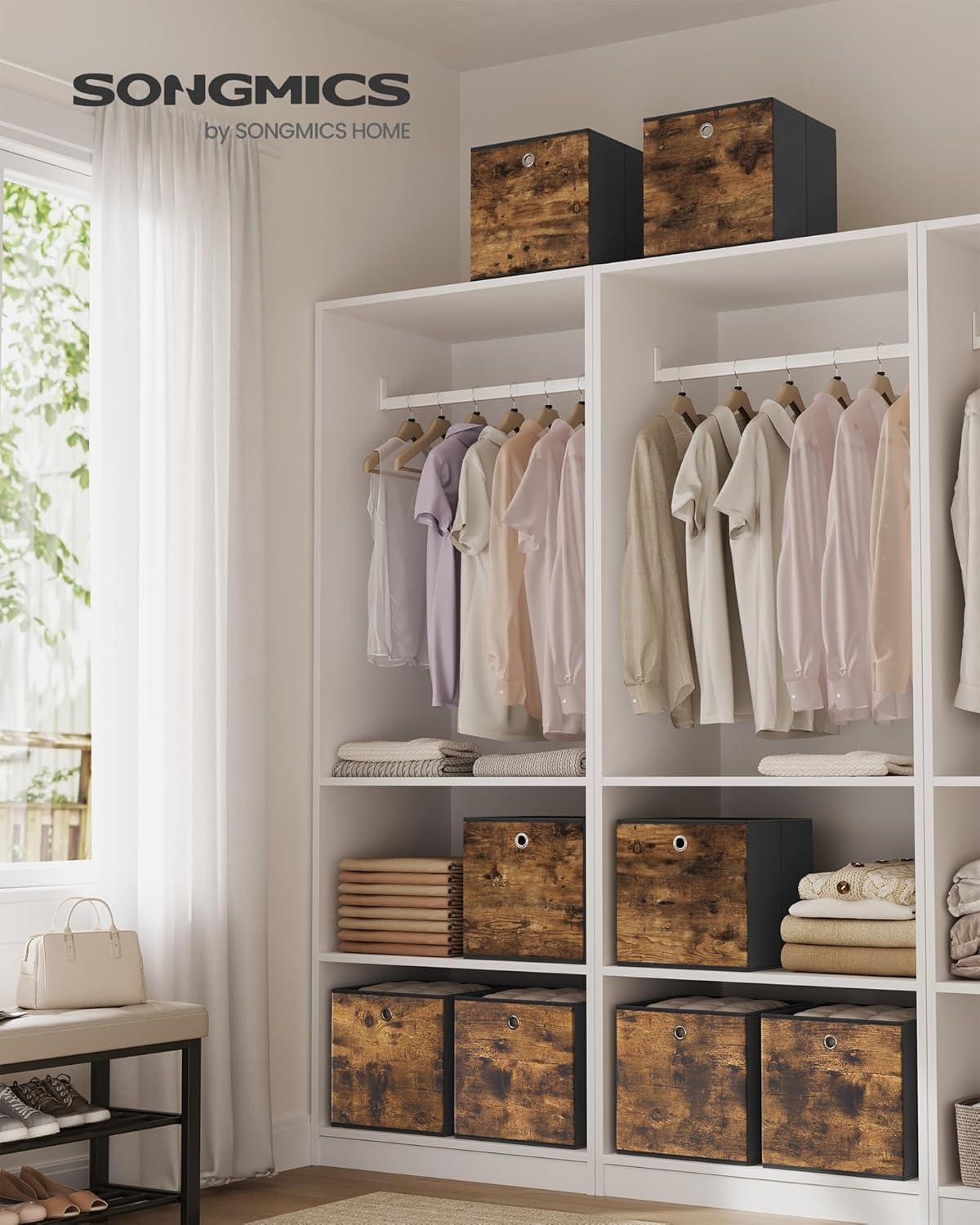 SONGMICS Storage Cubes, Set of 8 Storage Bins, Foldable Fabric Storage Boxes, 13 x 13 x 13 Inches, Fit Cube Storage Unit, for Clothes, Bedroom, Living Room, Rustic Brown and Ink Black URFB833B01(M(11.8″L x 11.8″W x 11.8″H))