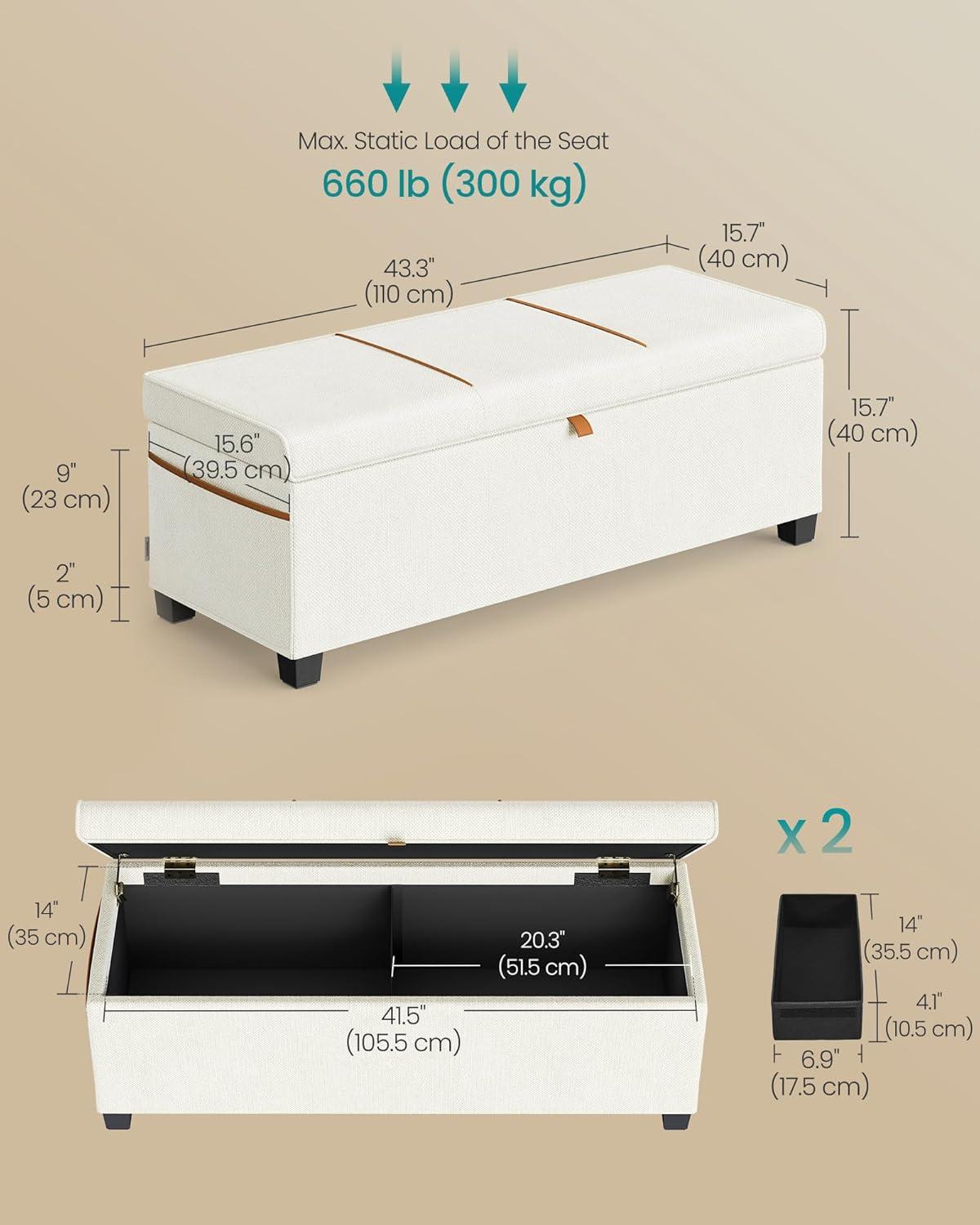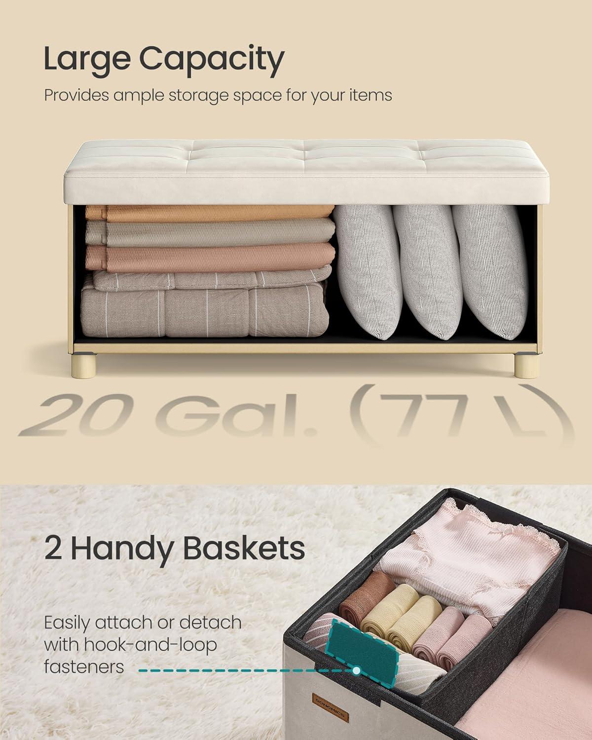 【LARGE STORAGE CAPACITY】Measuring 15″D x 30″W x 15.2″H (38 x 76 x 38.5 cm), this storage ottoman offers a 20-gallon (77 L) capacity, perfect for neatly organizing sheets, pillows, blankets, and magazines