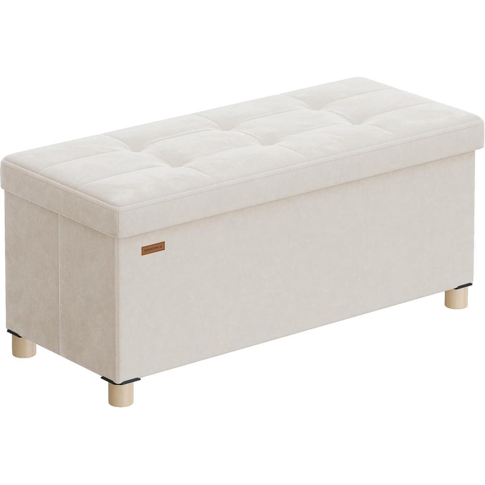 imageSONGMICS Storage Ottoman Bench Folding Storage Chest 15 x 30 x 152 Inches Foot Rest Stool 20 Gal 77 L Velvet Surface for Bedroom Entryway Living Room Jelly Pink ULSF0517R01Cream White