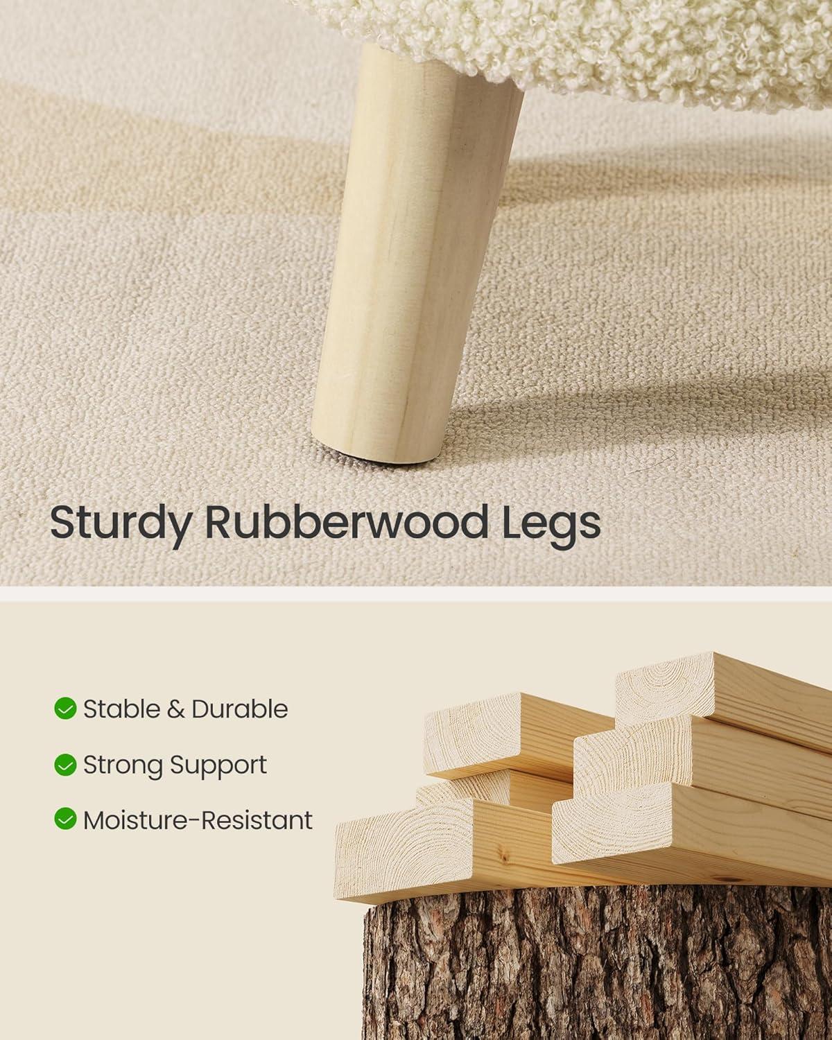 imageSONGMICS Storage Ottoman Foot Stool Round Ottoman with Padded Seat Foot Rest with Wood Legs Small Table for Hallway Living Room 122 Inches Velvet Cream White ULOM513LH01White