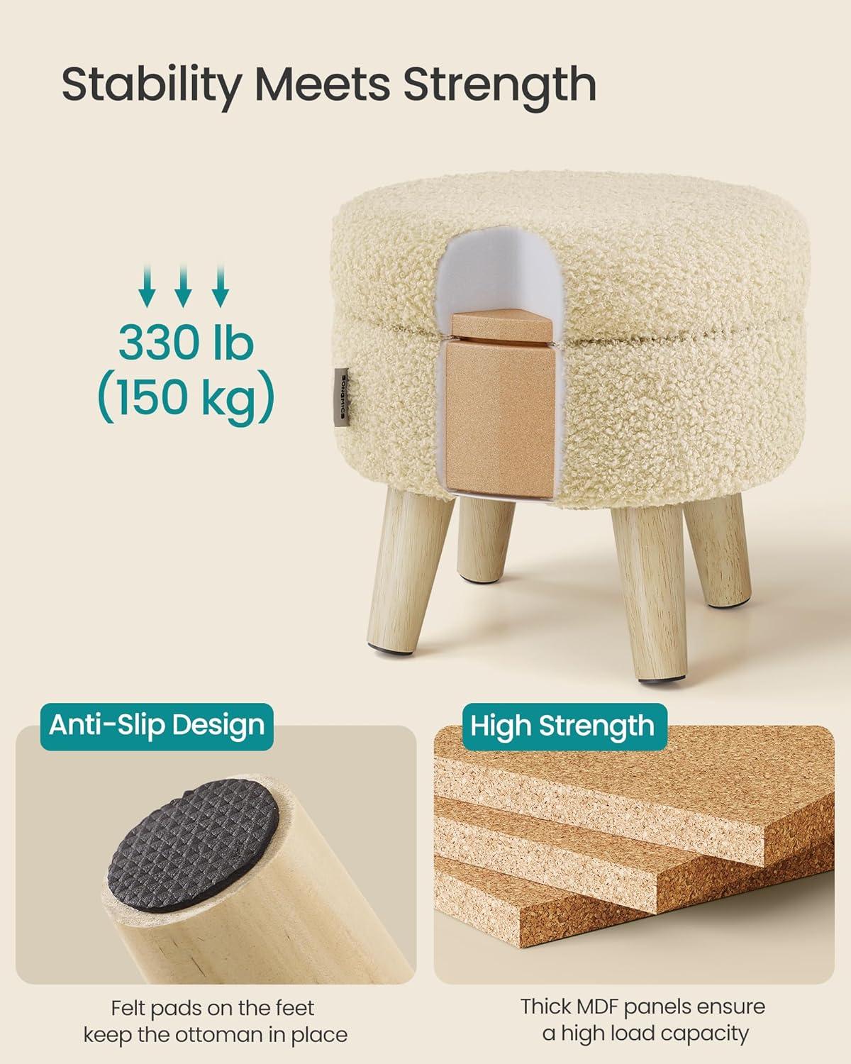 imageSONGMICS Storage Ottoman Foot Stool Round Ottoman with Padded Seat Foot Rest with Wood Legs Small Table for Hallway Living Room 122 Inches Velvet Cream White ULOM513LH01Summer Sand