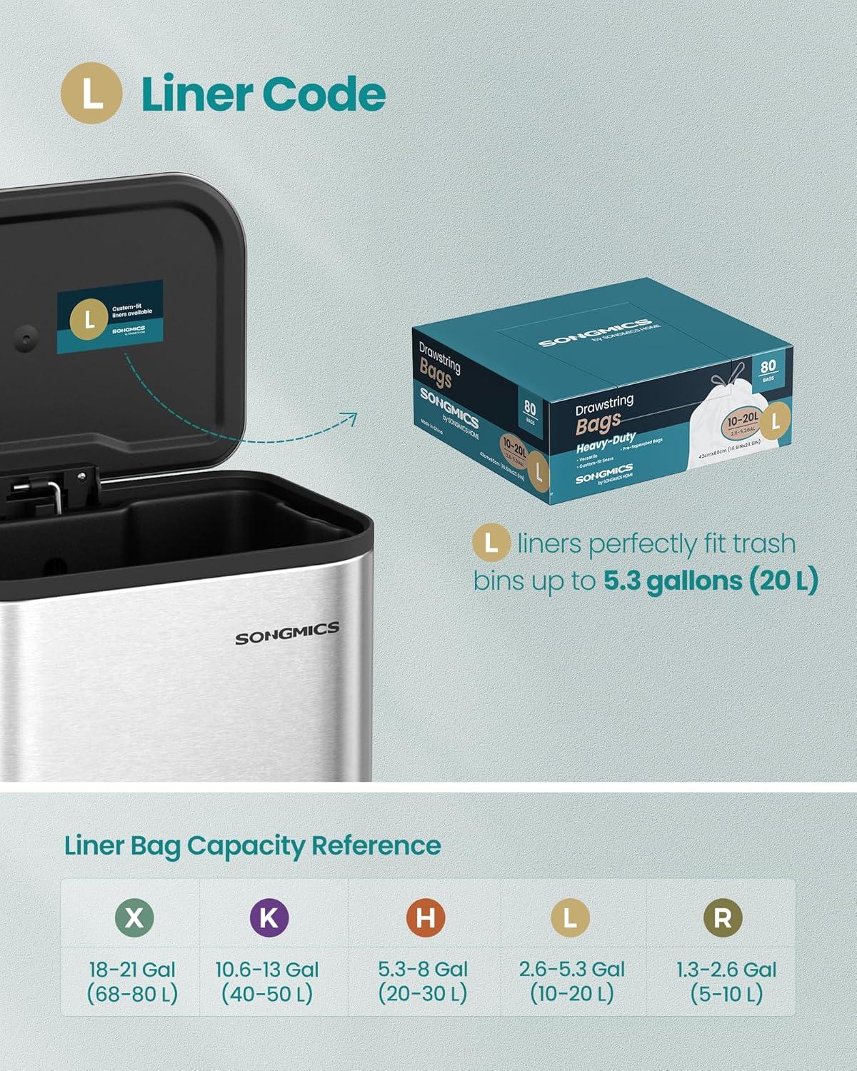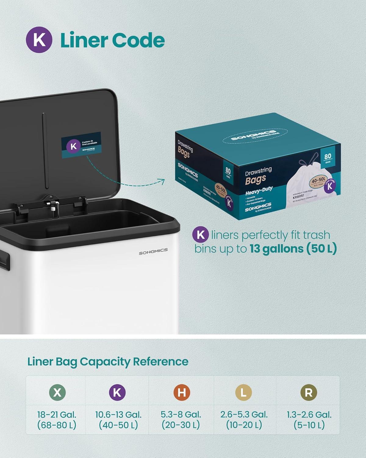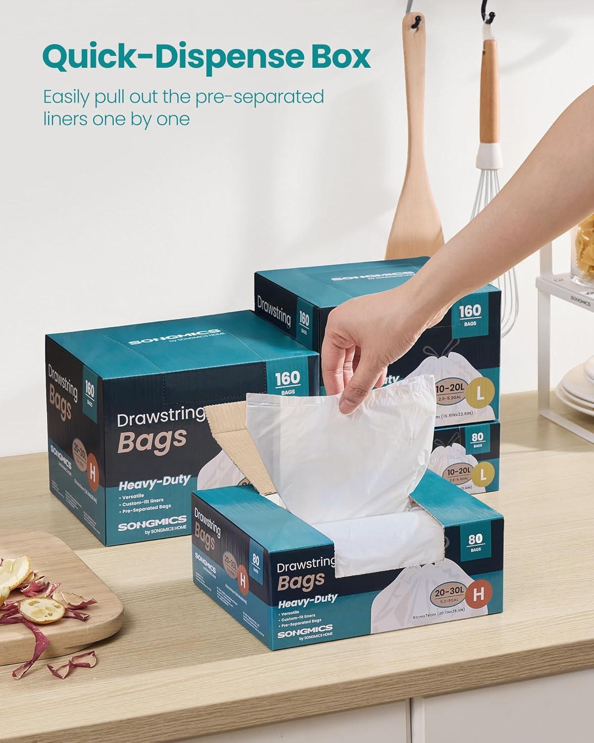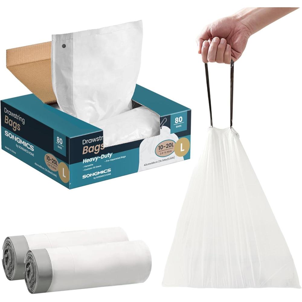 Convenient Drawstring: Sturdy drawstrings on both sides of the bin let you close and lift the bag with ease, keeping your hands clean and helping to seal in unwanted odors