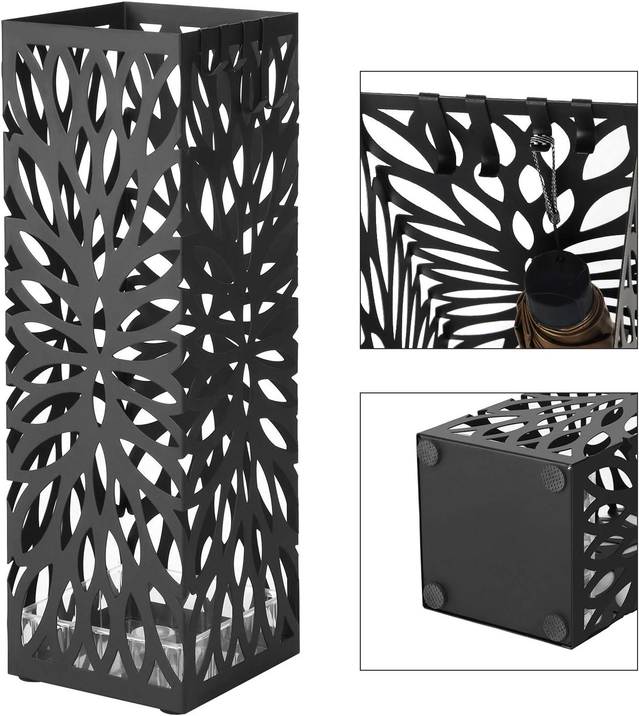 [Convenient Details] Our metal umbrella holder offers added convenience with its detachable plastic drip tray and 4 removable hooks. These user-friendly features ensure easy cleaning and provide a practical solution for hanging fold-up umbrellas