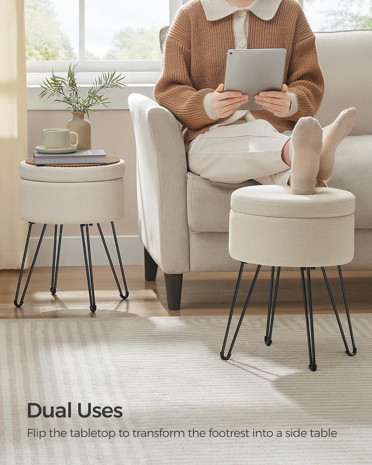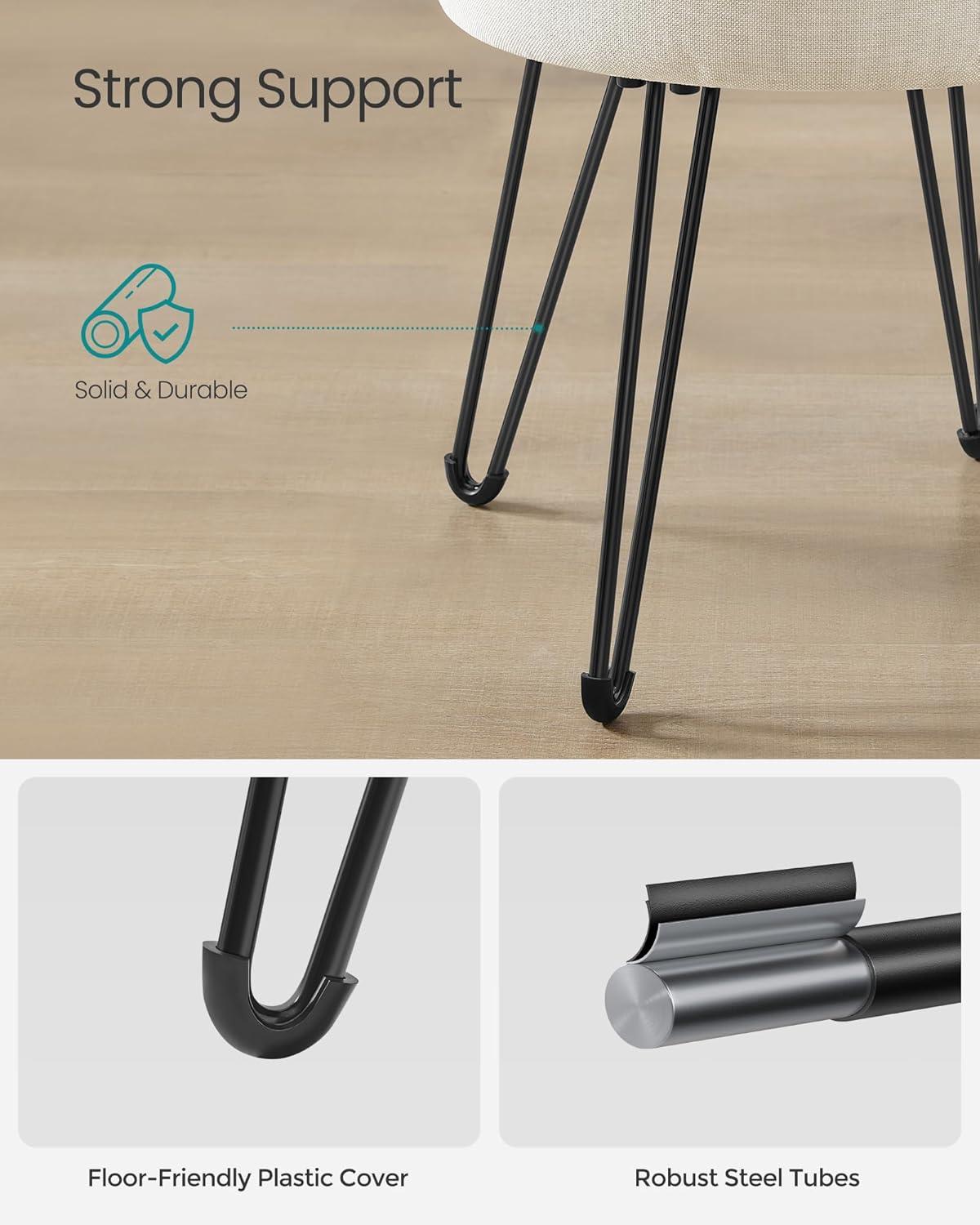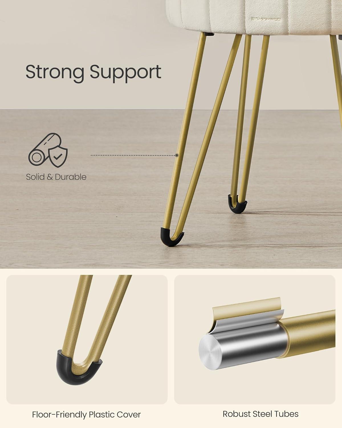 SONGMICS Vanity Stool Chair, Small Ottoman Stool with Storage, Vanity Chair, 15.4 Dia. x 17.4 Inches, 4 Metal Legs, for Makeup Room, for Living Room, Bedroom, Cream White ULOM002W01(Cream White)