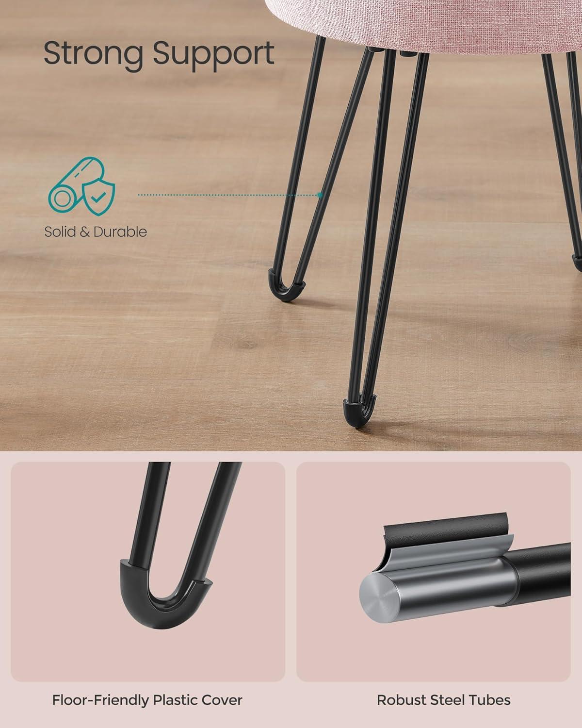 [Sturdy & Safe] Crafted with 4 robust steel legs and quality MDF panels, this makeup stool is strong enough to hold up to 300 lb (136 kg), so you can sit on it with your mind at ease. Plus, the plastic covers on the feet prevent scratches on the floor