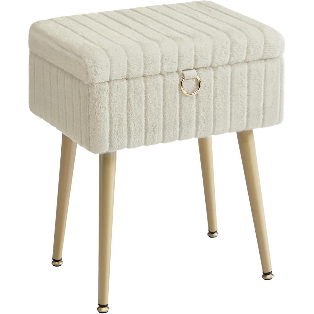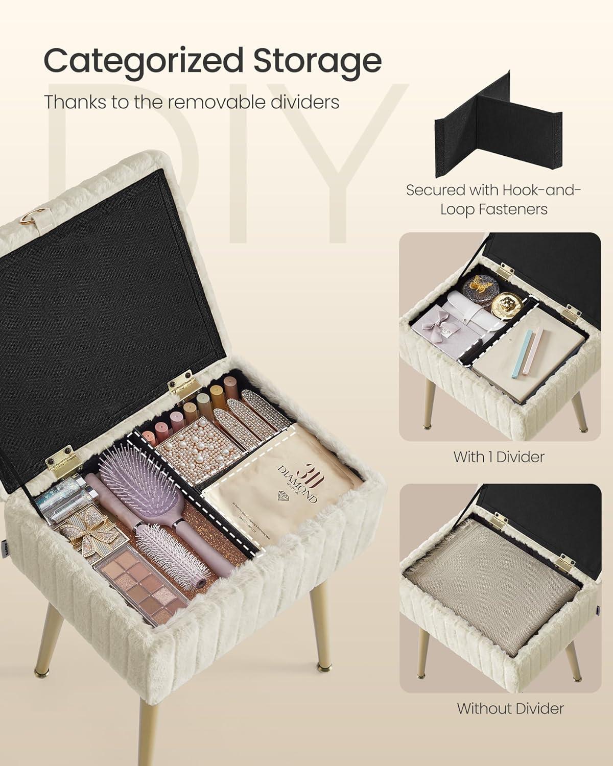 imageSONGMICS Vanity Stool Chair with Storage Makeup Stool Footrest Footstool Ottoman Metal Legs Adjustable Feet for Living Room Bedroom Makeup Room Cappuccino Beige ULOM505LZ02Cream White