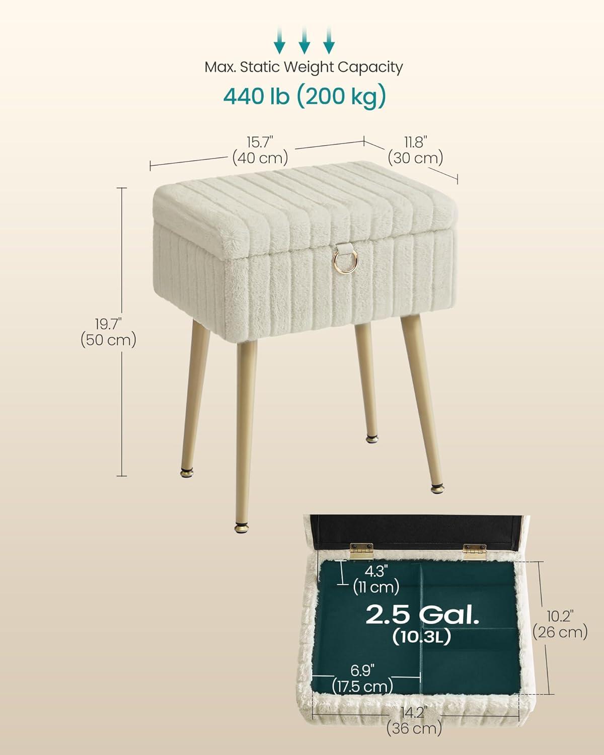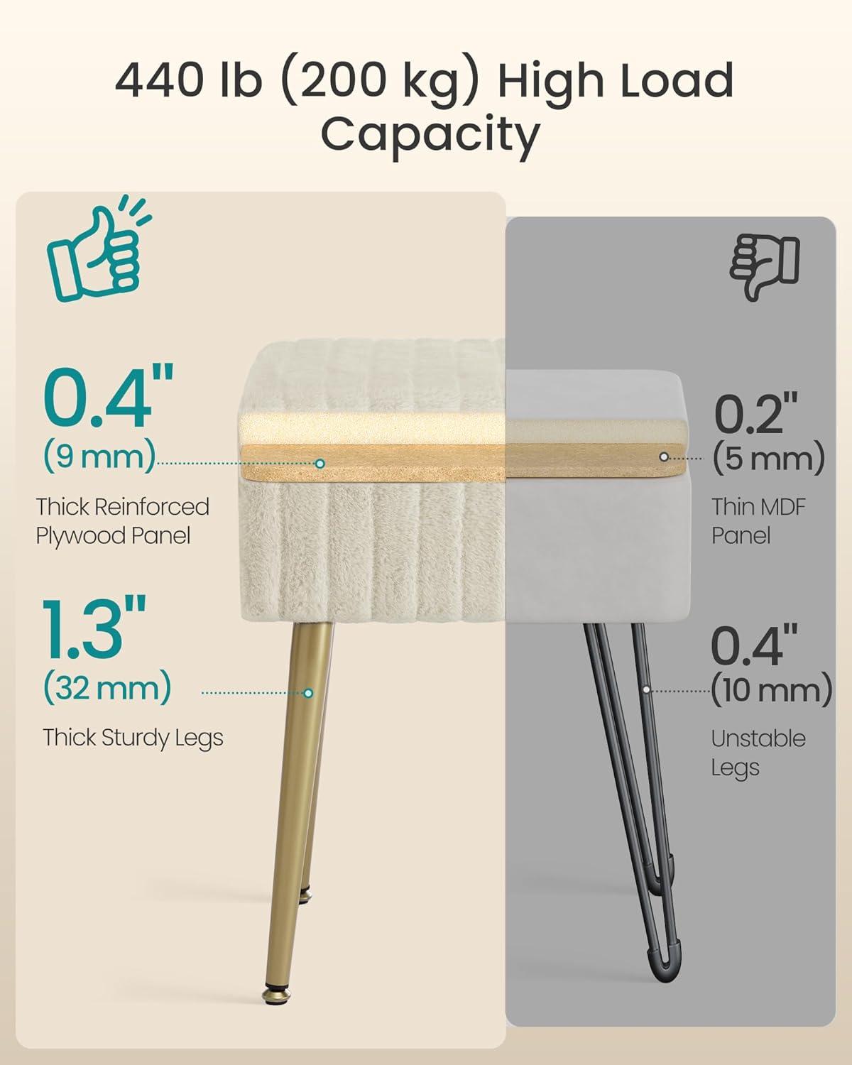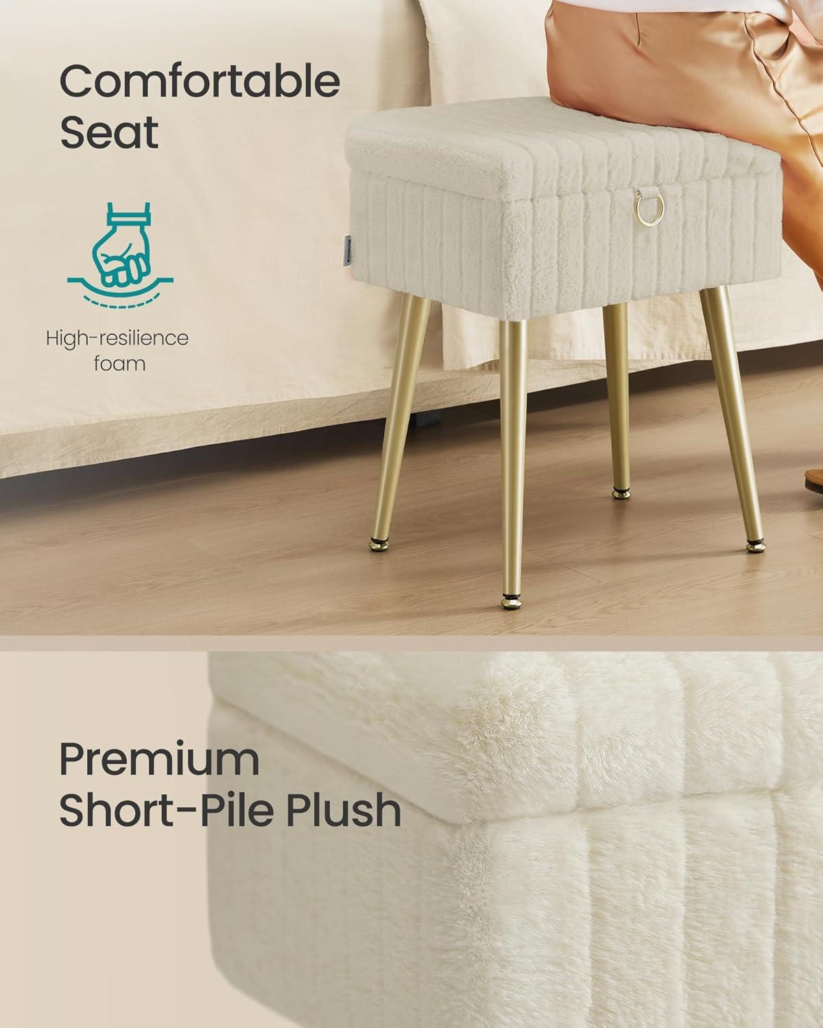 SONGMICS Vanity Stool Chair with Storage, Makeup Stool, Footrest Footstool Ottoman, Metal Legs, Adjustable Feet, for Living Room, Bedroom, Makeup Room, Cappuccino Beige ULOM505LZ02(Cream White)