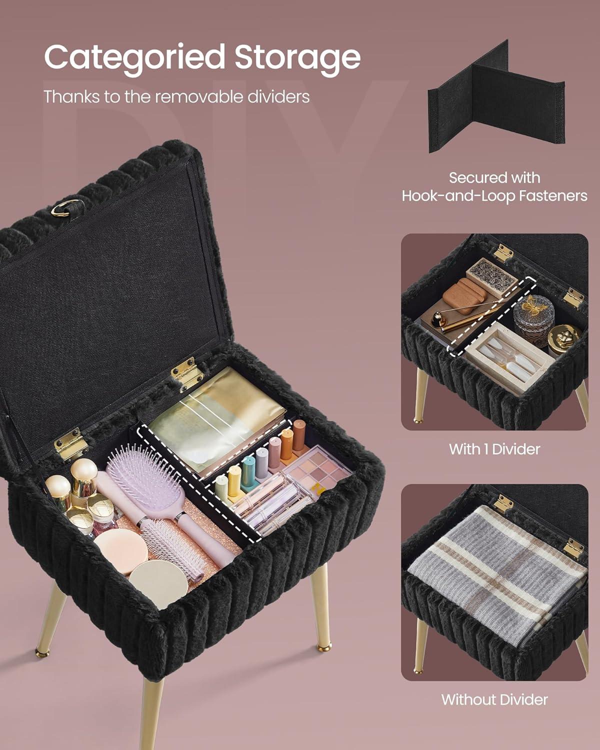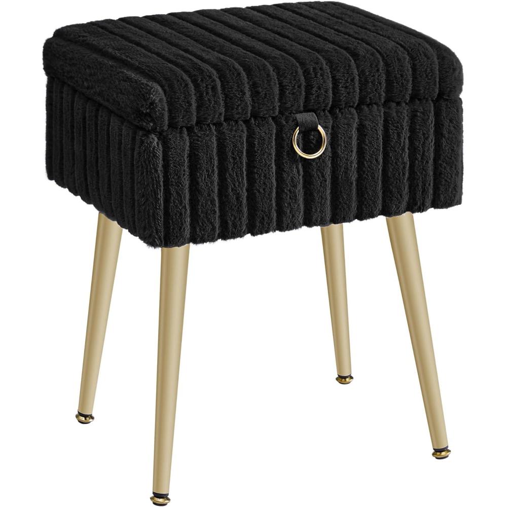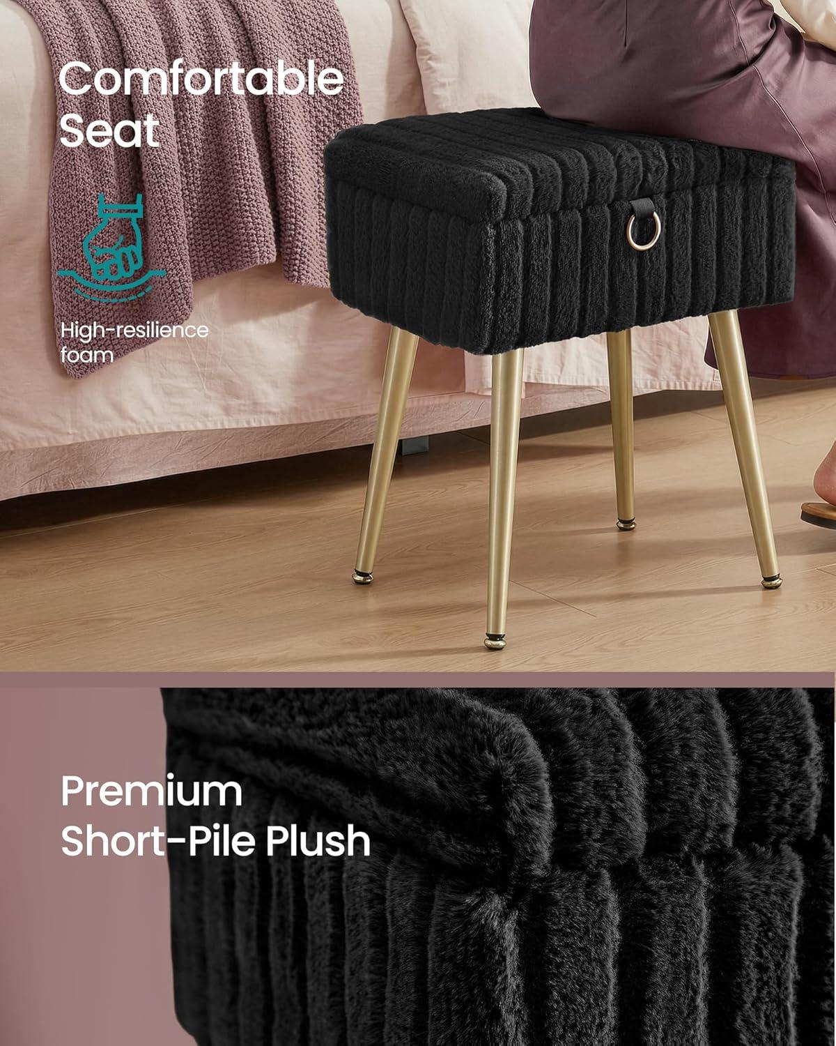SONGMICS Vanity Stool Chair with Storage, Makeup Stool, Footrest Footstool Ottoman, Metal Legs, Adjustable Feet, for Living Room, Bedroom, Makeup Room, Cappuccino Beige ULOM505LZ02(Ink Black)