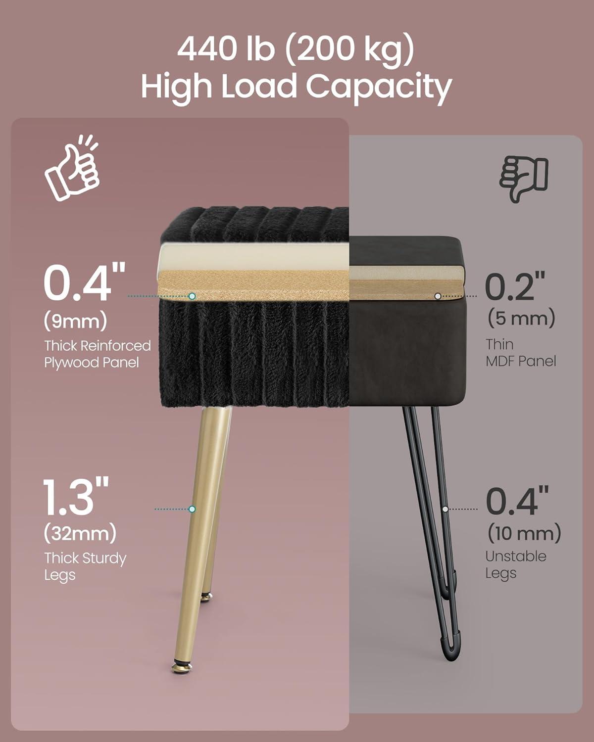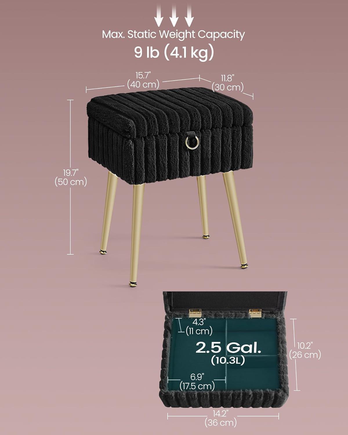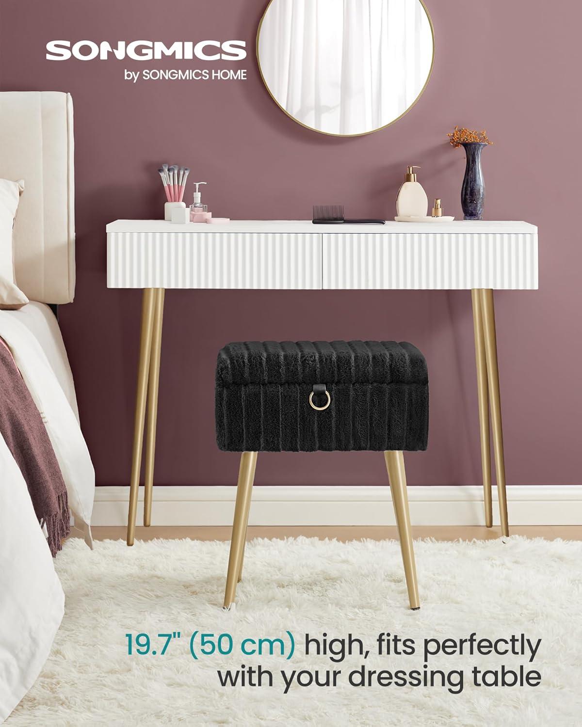 SONGMICS Vanity Stool Chair with Storage, Makeup Stool, Footrest Footstool Ottoman, Metal Legs, Adjustable Feet, for Living Room, Bedroom, Makeup Room, Cappuccino Beige ULOM505LZ02(Ink Black)