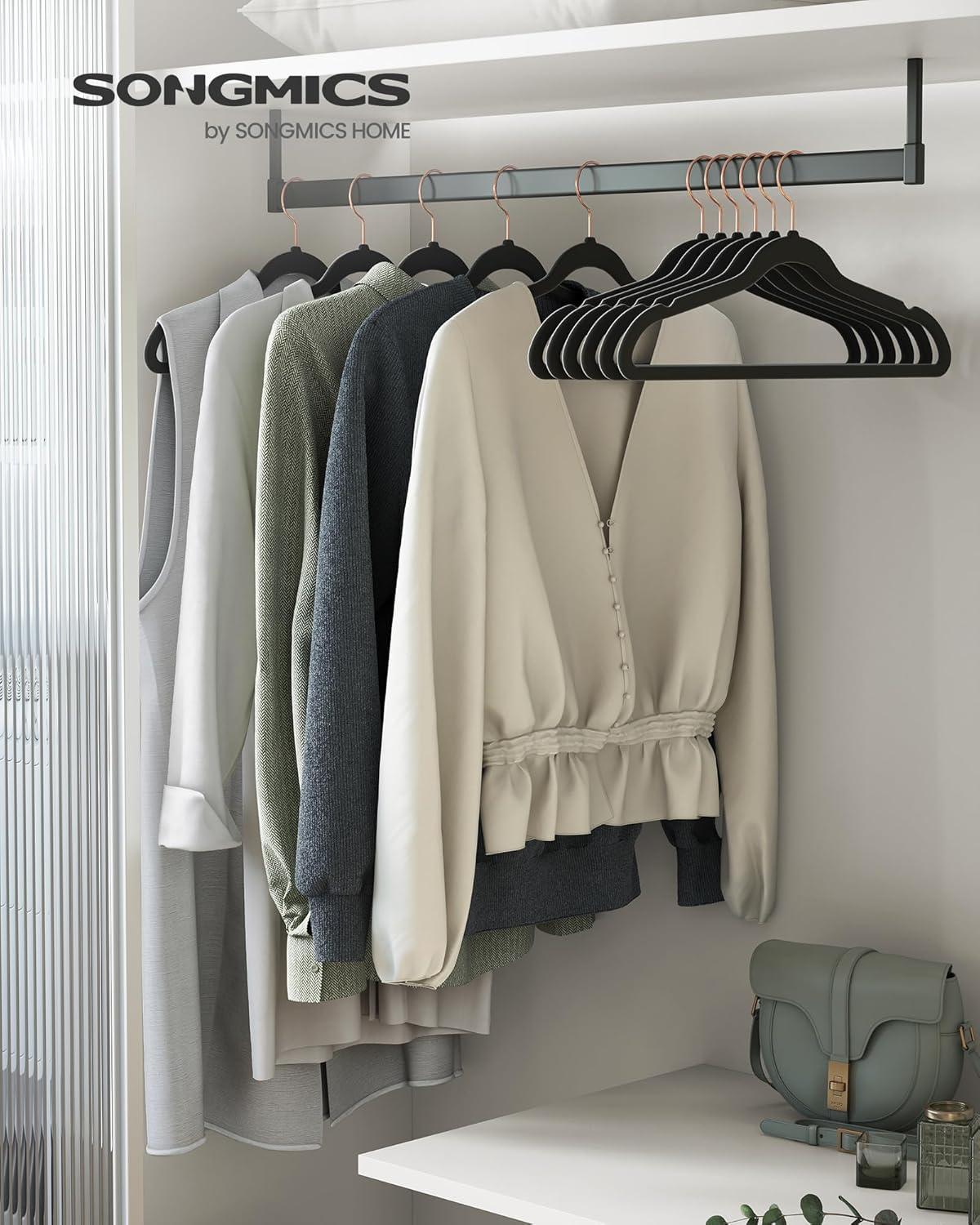 SONGMICS Velvet Hangers, Non-Slip Hanger, Rose Gold Color Swivel Hook, 50-Pack, Sandy Beige UCRF026K50(Black)